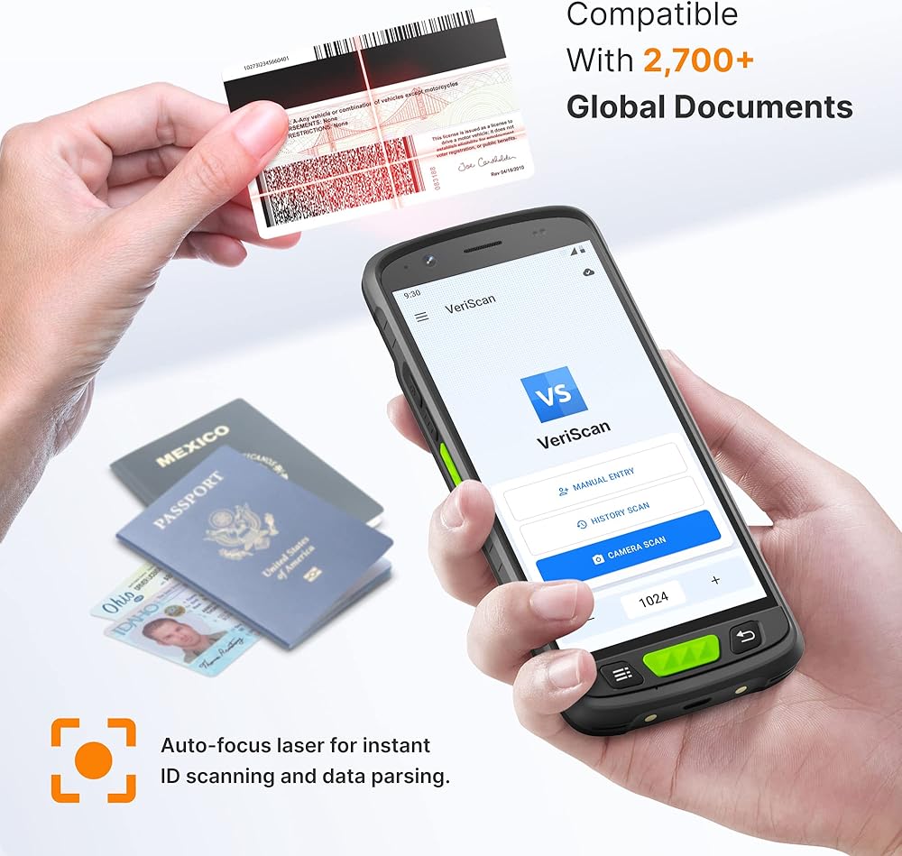 ماسح ضوئي محمول لبطاقات الهوية 9000 - معرف الهوية ورخصة القيادة والتحقق من العمر وماسح ضوئي لجواز السفر مع برنامج Veriscan Premium - مزامنة أجهزة متعددة