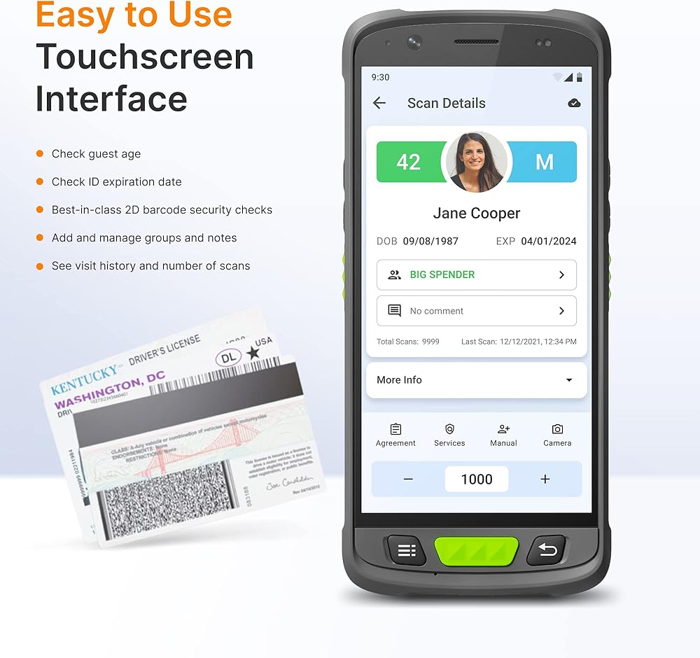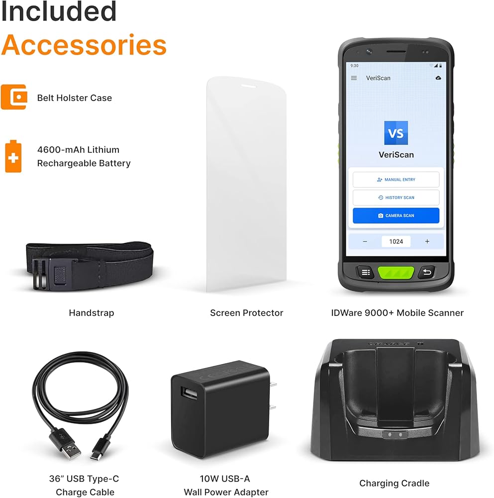 IDWare9000 هو ماسح ضوئي محمول لبطاقات الهوية يقرأ رخص القيادة الأمريكية، والهويات الصادرة عن الحكومة، والهويات الكندية، والهويات العسكرية، وجوازات السفر العالمية