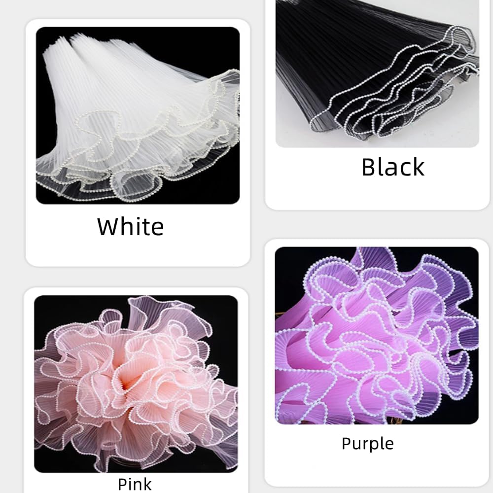 The unique design of pure color pleated wavy lace with pearl and gold rim,, makes your flowers looked more charming and attractive.Also great for craft projects,table coverings and other artistic inspirations.