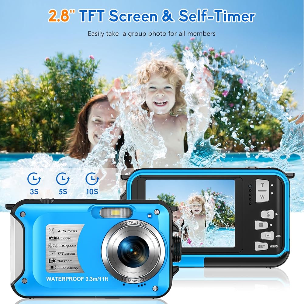 • ♥ 2.8'' TFT Screen & Self-Timer: With a 2.8-inch TFT screen, this waterproof camera makes it easy to use features like timer shooting and continuous shooting. Whether you're going about your daily life or embarking on an adventure, it's easy to capture beautiful moments and preserve precious ones. Easy to carry and simple to operate, this camera allows you to effortlessly indulge in the joys of photography.