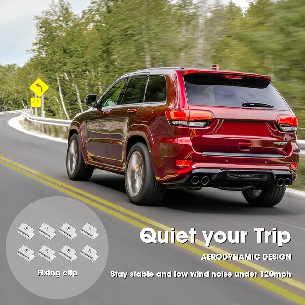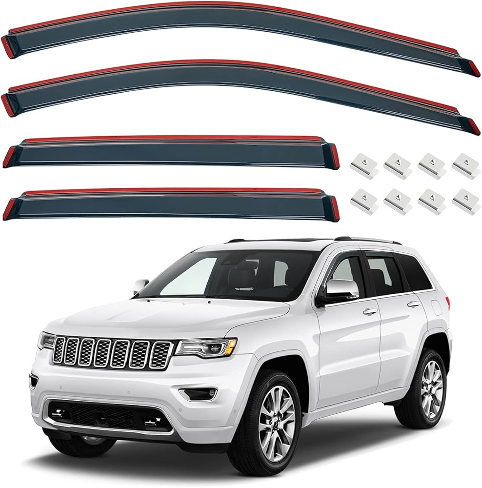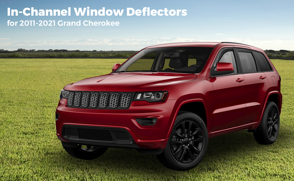 【ملاءمة مثالية】 واقيات المطر باللون الأسود الدخاني مصممة خصيصًا لسيارة جراند شيروكي 2011-2021، والتي تحمي الجزء الداخلي لسيارتك من المطر والطقس السيئ.