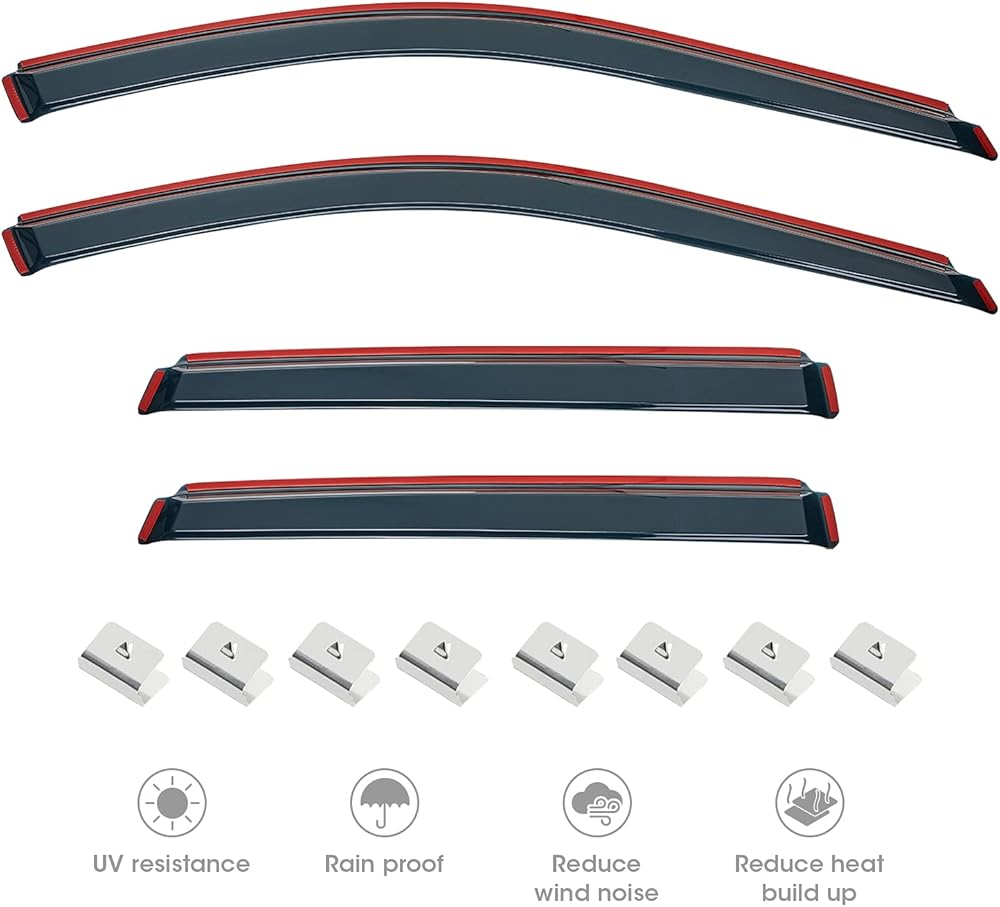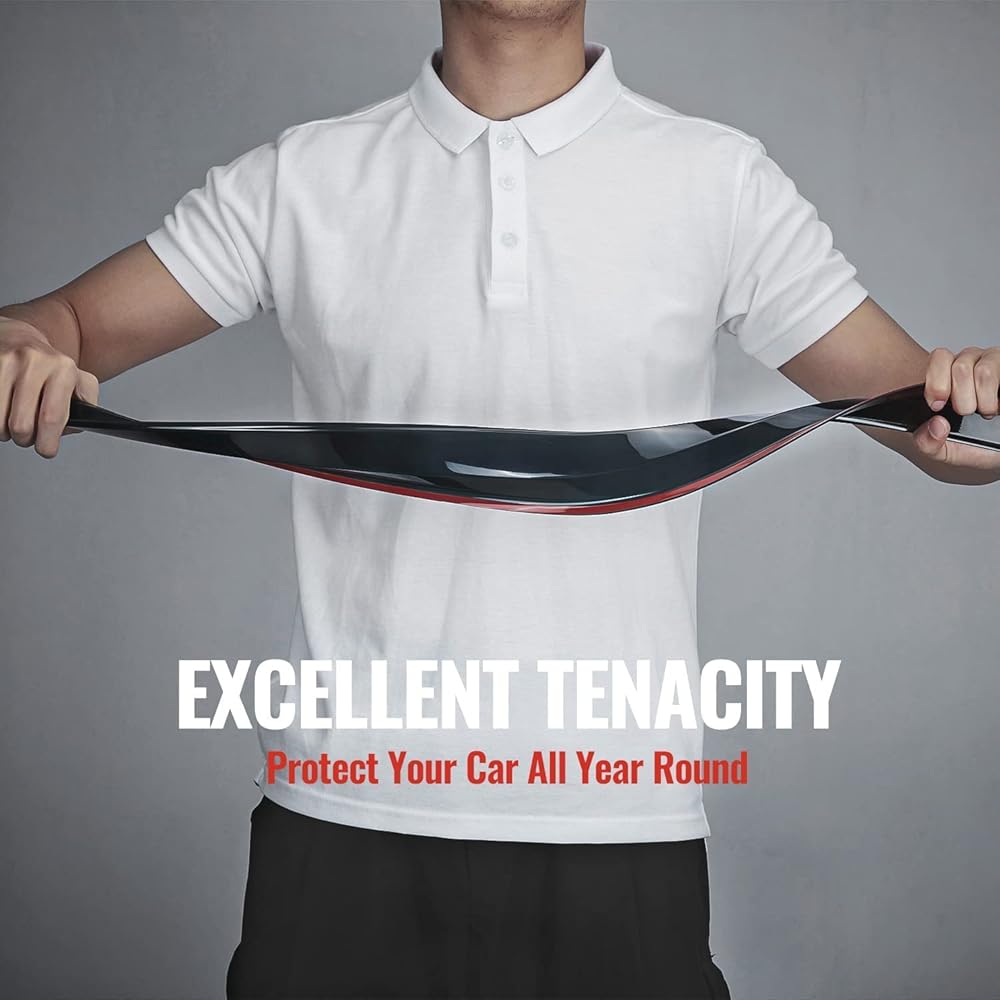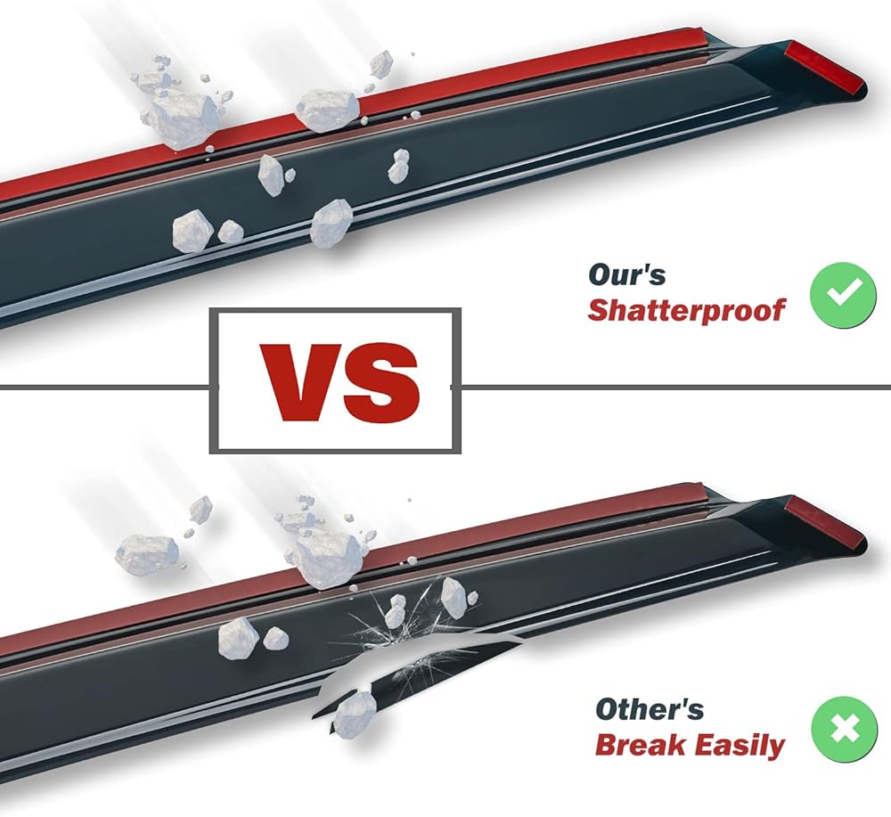 【مقاومة للكسر ومتانة ممتازة】 انحراف النوافذ مصنوع من الأكريليك عالي الجودة القوي والمقاوم للكسر، ولن ينحني أو ينكسر أو يتشقق. واقي نافذة متين من الشمس لحماية سيارتك طوال العام.