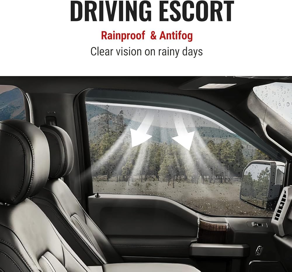【مقاوم للمطر ومضاد للضباب】 تسمح واقيات المطر بفتح النوافذ قليلاً، وتمنع دخول مياه المطر من خلال قناع النافذة، وتسمح للهواء النقي بالدخول، وتجنب تعفير النافذة، مثالية لقيادة السيارة.