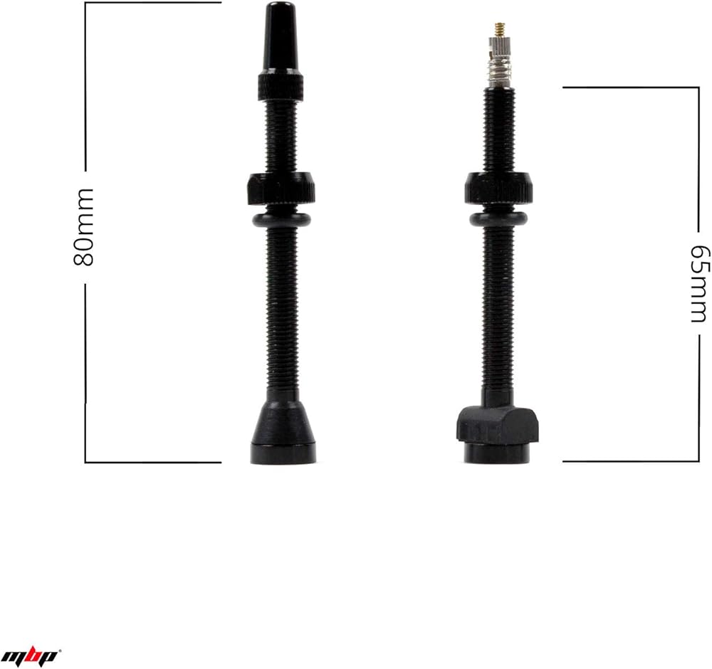 MBP, Madison Bicycle Parts, Alloy Presta Tubeless Valve Stems are designed from expert mechanic experience. The base is larger than most stems to accommodate a wide variety of rim designs. Our stems also feature two bases that will end up fitting almost all bicycle rims on the market. The stem, nut, and cap are all made of aluminum. They are tried and tested to be top quality. They are lightweight due to their alloy construction and very sturdy. The stems have removable valve cores for ease of use injecting sealant. (Length Size: 65mm). 1 Year Manufacturer warranty on all MBP parts against defects. Satisfaction Guaranteed.