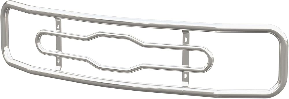 LOGO REVEAL. This truck brush guard features a unique vehicle logo reveal to show off your badge with pride. The horizontal tubes contour around the logo, adding a signature look to your truck and helping to protect the center grille