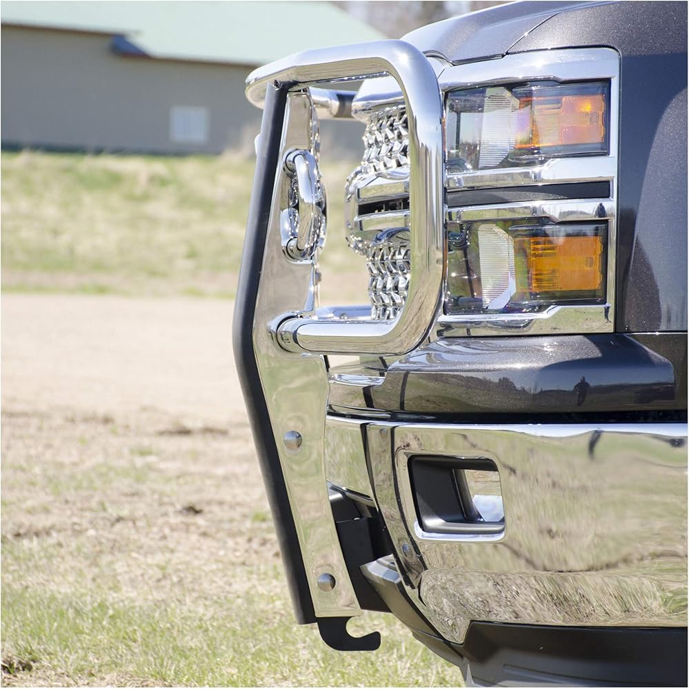 CORROSION-RESISTANT. This truck brush guard is shielded in a durable chrome finish for a bright shine and corrosion resistance. The uprights also feature a stainless steel backing for a unique accent