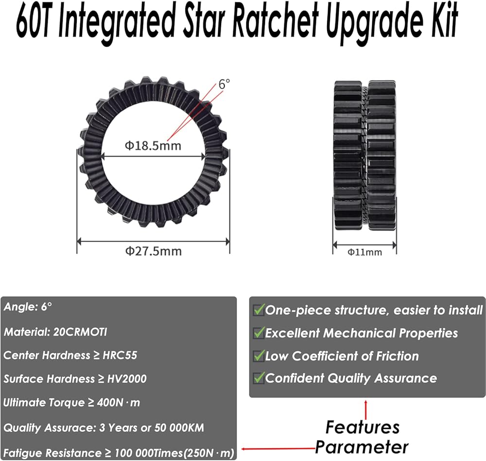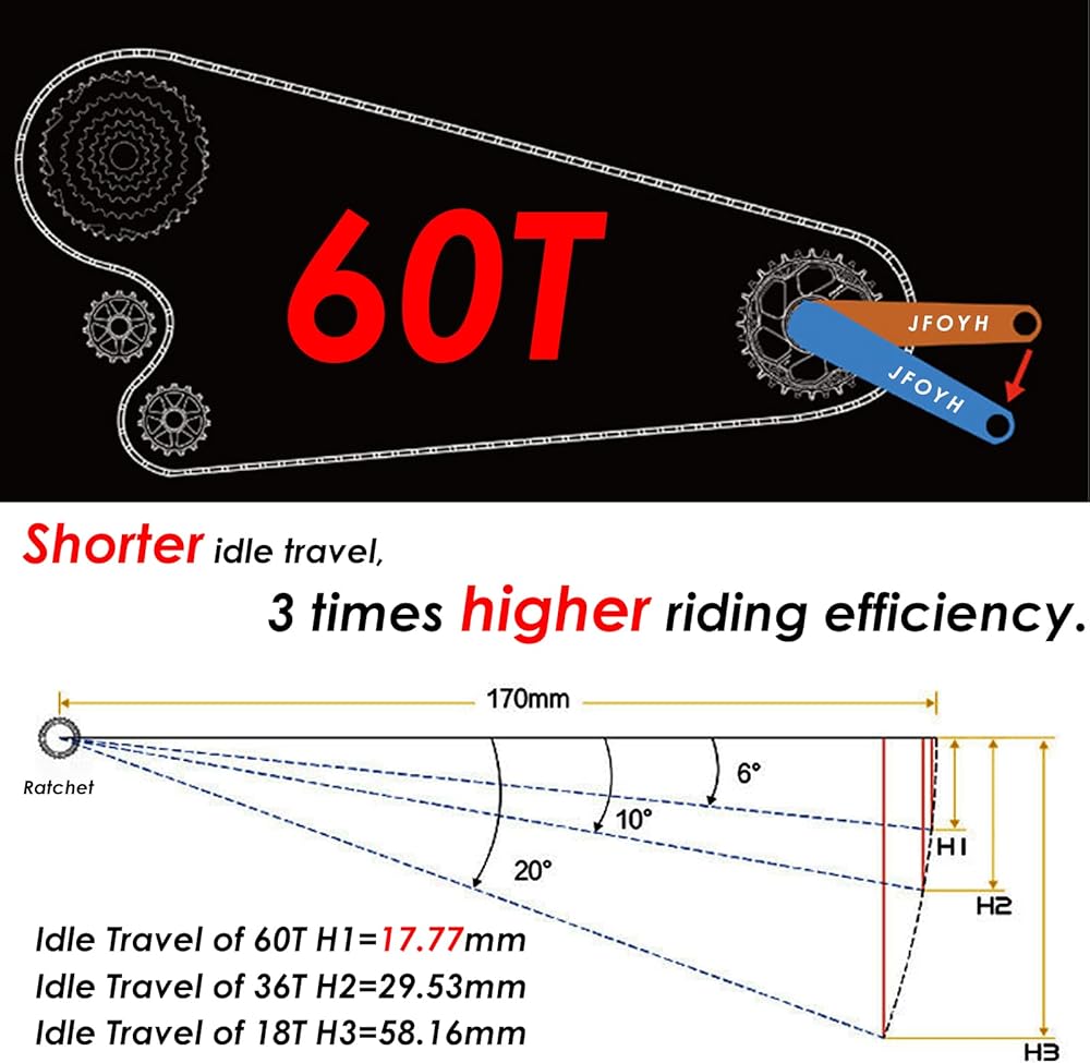 🚴 60T: مع إجمالي 60 سنًا، يبلغ قياس كل سن 6 درجات، يقلل نظامنا بشكل كبير من السفر الخامل ويحسن بشكل كبير من كفاءة ركوب الدراجات مقارنة بخيارات 18T/36T/54T.