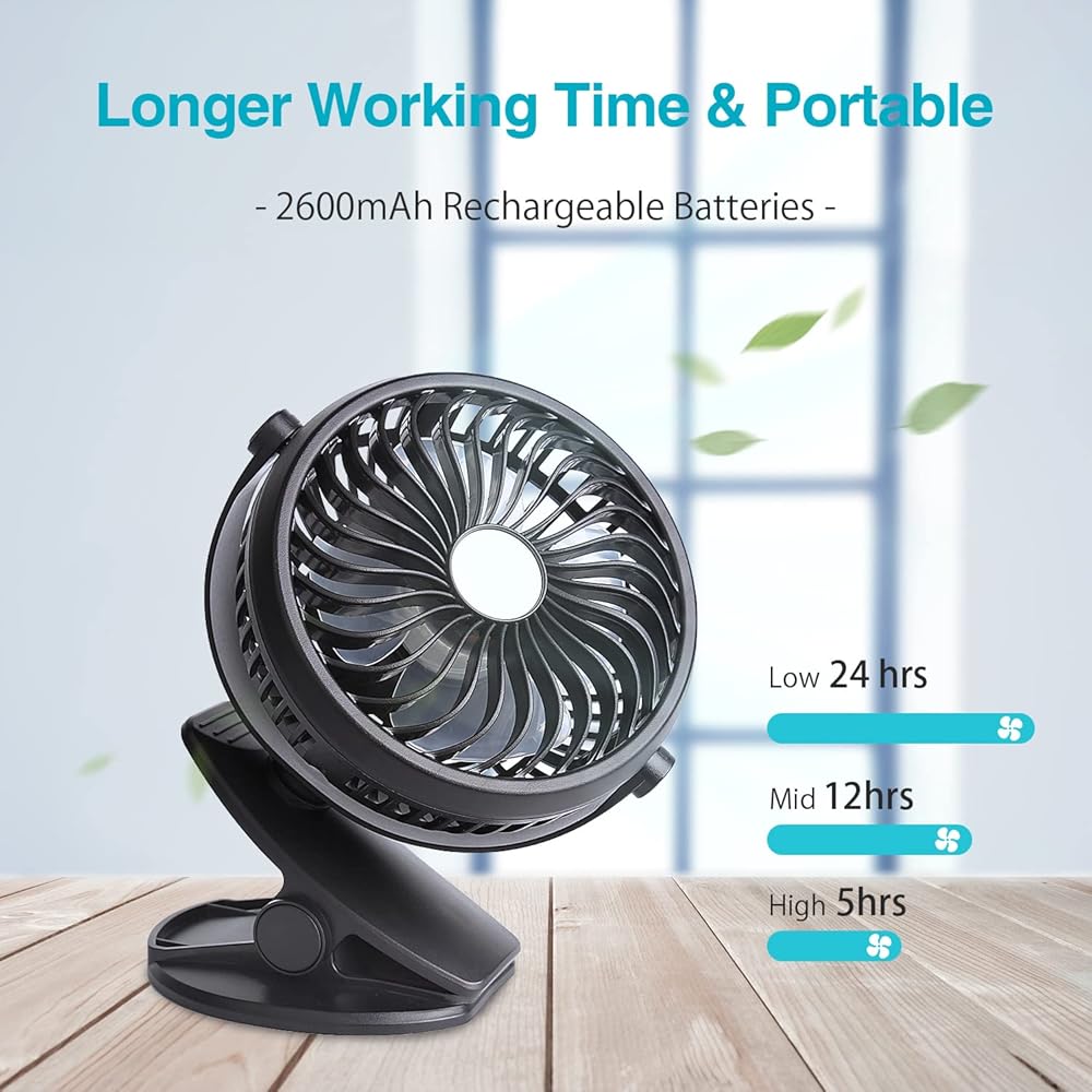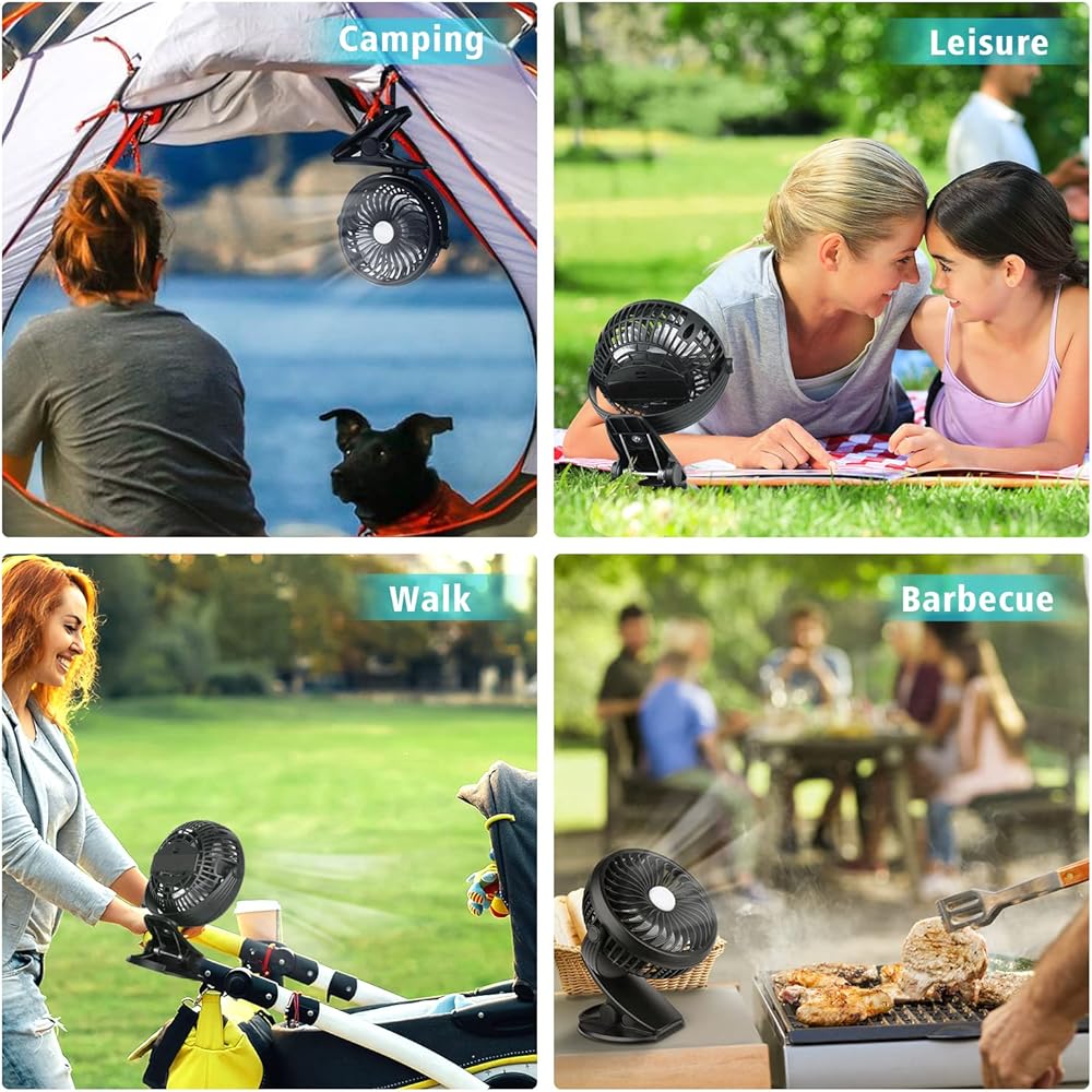 نمط المشبك - يمكن وضعه أو تثبيته في أي مكان تريده، جيد لعربة الأطفال والمنزل والمكتب واللابتوب والتمارين الرياضية والمقعد الخلفي للسيارة وفي الهواء الطلق والتخييم والرحلات وفي أي مكان يحتاج إلى رياح باردة