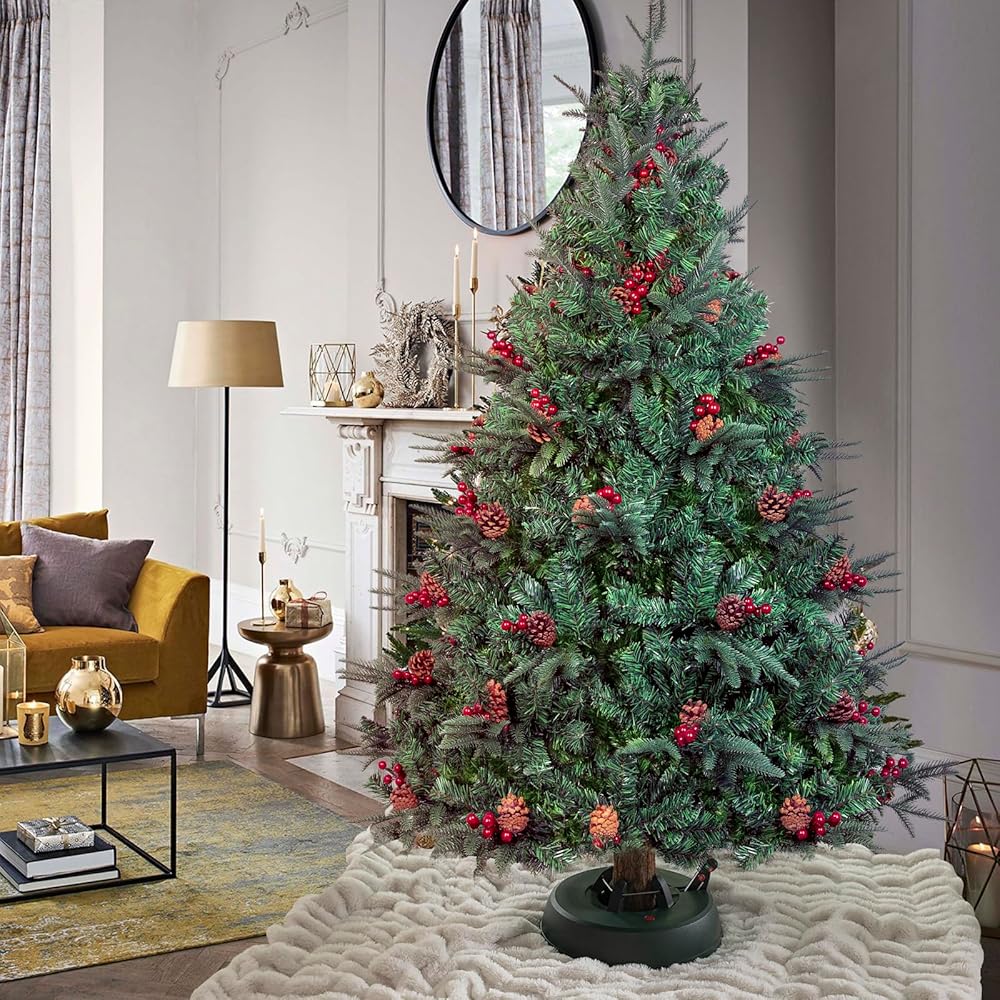 حامل شجرة عيد الميلاد بدواسة قدم بلاستيكية خضراء أوتوماتيكية، قطر كبير 14.5 بوصة × ارتفاع 3.5 بوصة