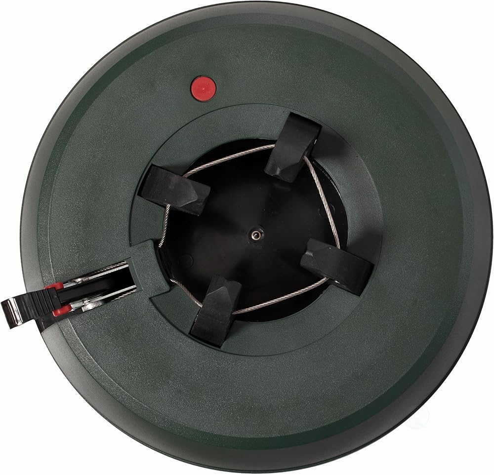 This tree stand comes with single cable operation, stand is very easy to use just put in the tree hold it straight and step on the foot pedal until claw firmly tightens the trunk, automatic water level indicator shows when to stop and when your tree needs more water. Green finish will add to your holiday decorations.