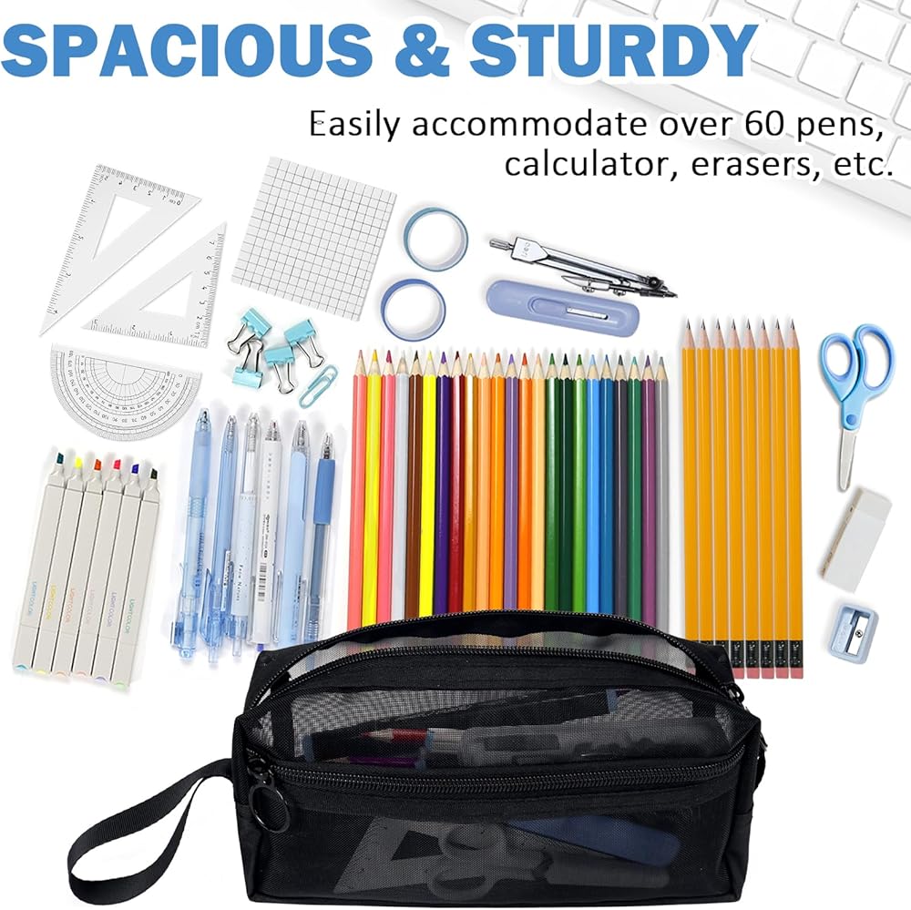 ★جيب أمامي بسحاب: بالإضافة إلى منطقة التخزين الرئيسية، تتميز حافظة القلم الرصاص هذه بجيب أمامي بسحاب لتخزين العناصر الصغيرة بشكل مريح مثل الإشارات المرجعية والملاحظات اللاصقة والمفاتيح. ابحث عن احتياجاتك بسهولة وحسّن الكفاءة