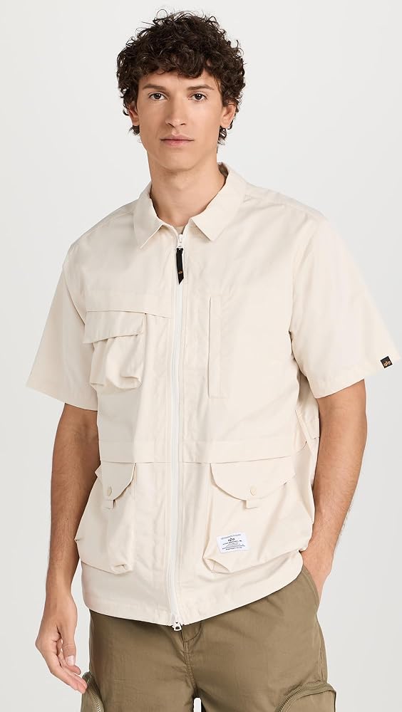 جاكيت قميص رجالي بأكمام قصيرة ومتعدد الجيوب بسحّاب من Alpha Industries