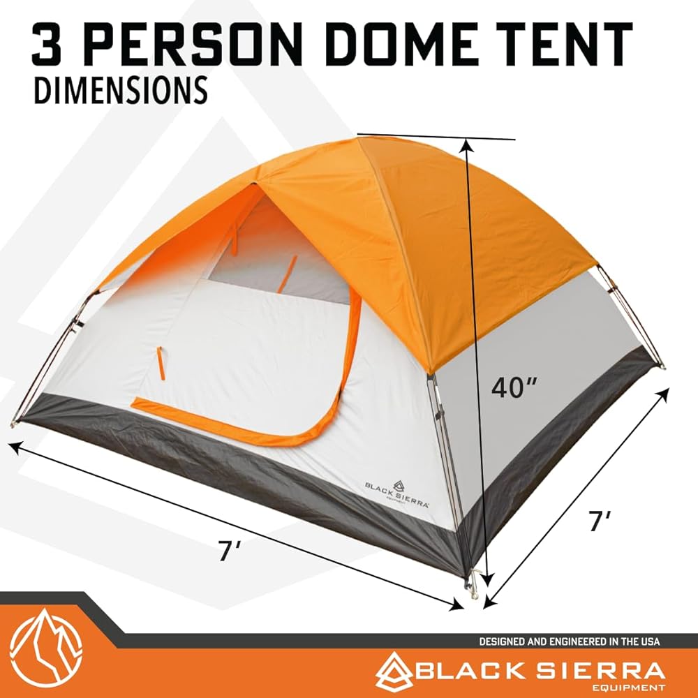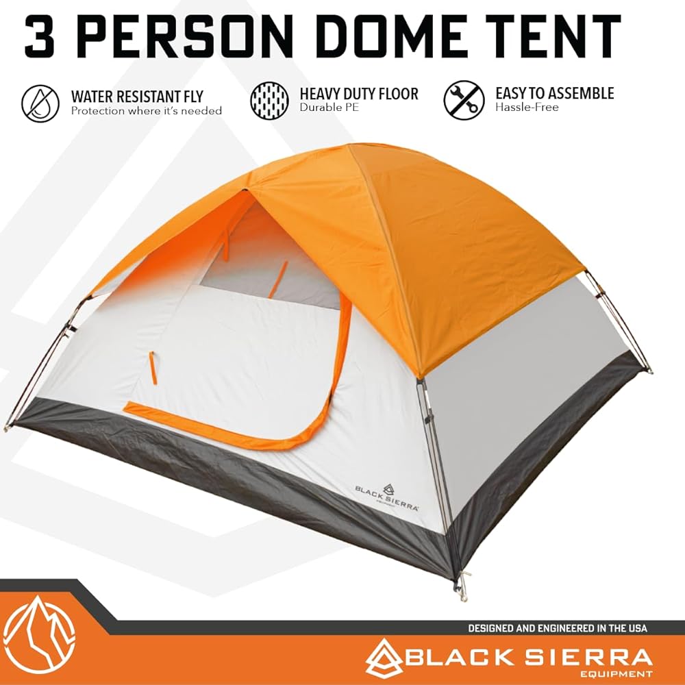 خيمة قبة تتسع لـ 3 أشخاص لحقيبة الظهر، سهلة الإعداد مع ذبابة مطر مقاومة للطقس، 49 قدمًا مربعًا من الداخل الفسيح، إطار قائم مجاني للخدمة الشاقة، خيمة تخييم خفيفة الوزن من شركة Black Sierra Equipment