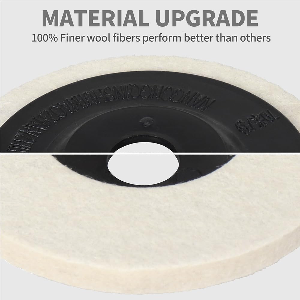🌈【Combination use】: Nylon fiber wheels are sufficient for major polishing work on most metals (iron, stainless steel, aluminum, etc.). Wool wheels are used at the finish of polishing and in combination with waxing can create a high level of shiny surface and mirror finish, and can also be used for professional polishing work on cars, yachts, etc.