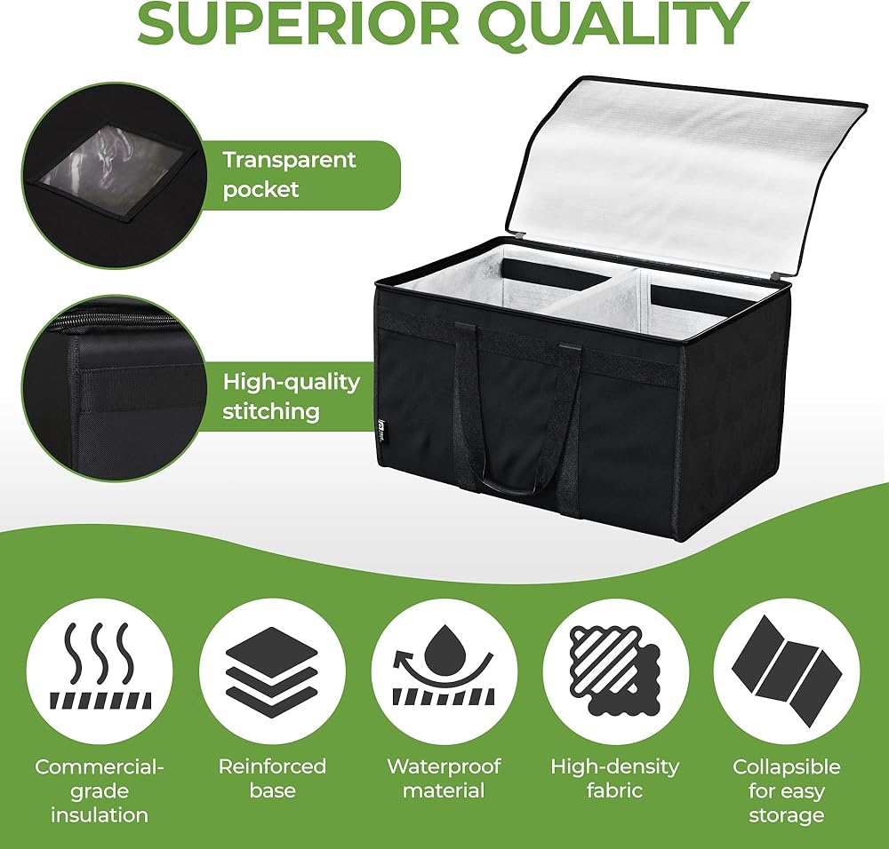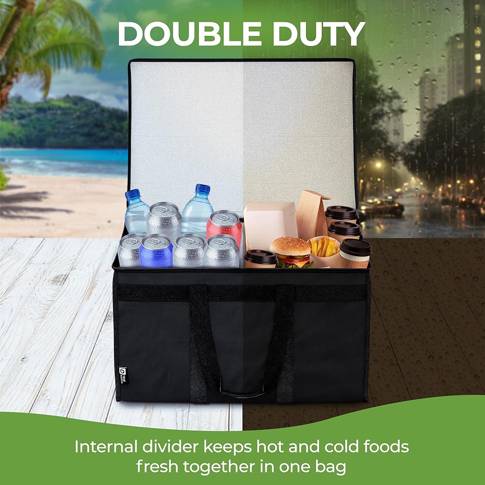 • 🥇 الطريقة الذكية لتوصيل الطعام - هل تكره أن تصبح أطعمتك الساخنة باردة أو تذوب الأطعمة المجمدة أثناء رحلتك إلى المنزل؟ حقائبنا المعزولة لتوصيل الطعام مبطنة بالألمنيوم الفاخر و1/3 بوصة من الرغوة العازلة. مع المقسم المركزي الخاص بنا، يمكنك الحفاظ على الأطعمة الساخنة والباردة طازجة في نفس الوقت!