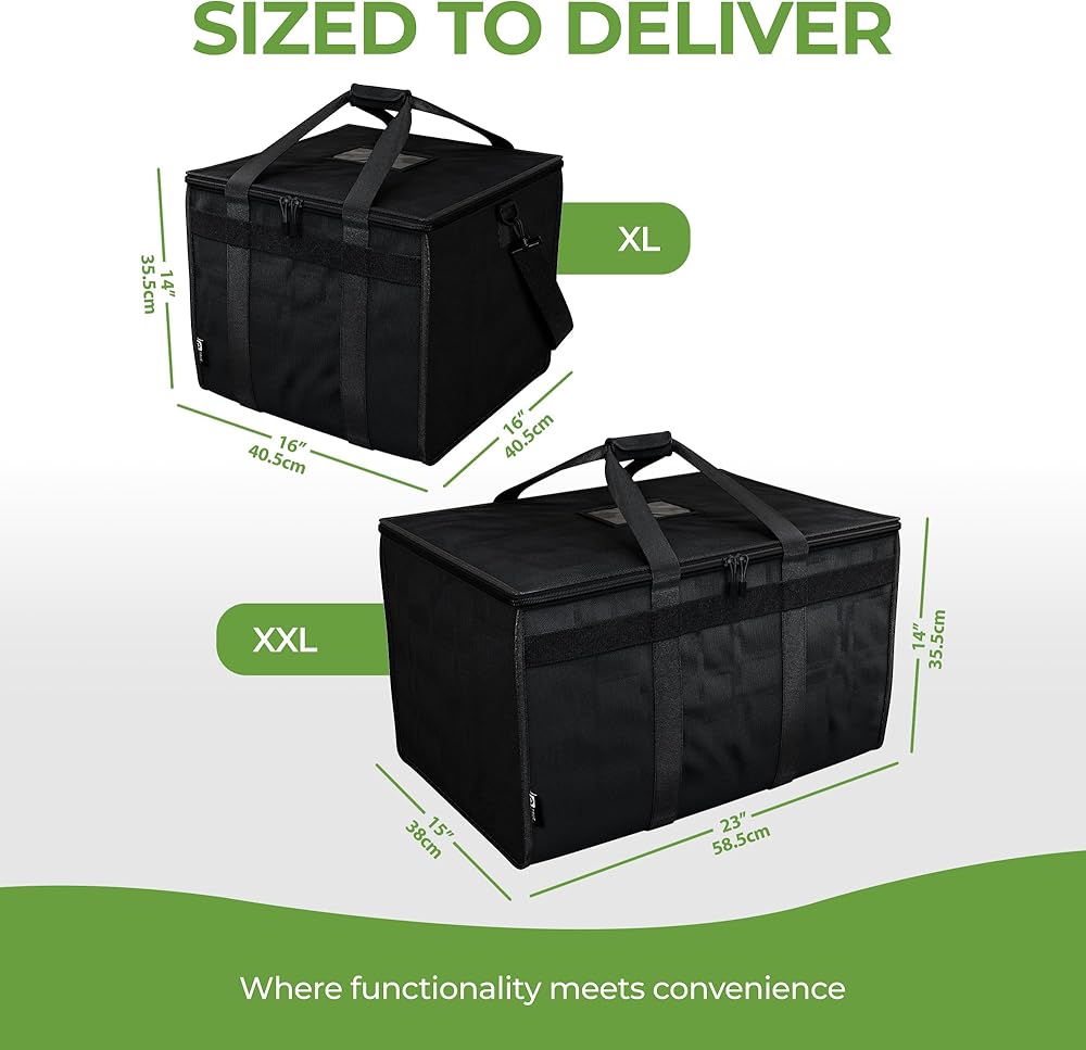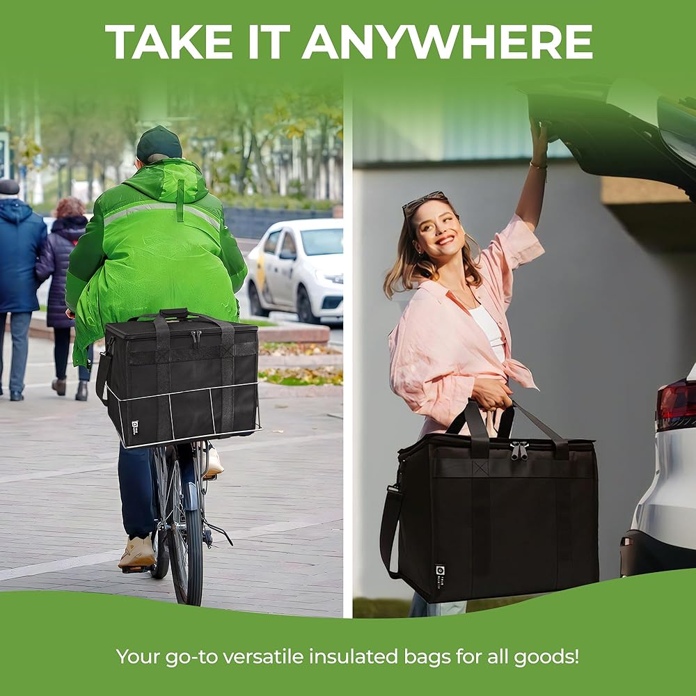 • 💪سعة حمل هائلة - مقاس 23 بوصة طول × 15 بوصة عرض × 14 بوصة ارتفاع، مثالية لـ Uber Eats وDoordash وInstacart وجميع احتياجات تقديم الطعام الأخرى. تشتمل صناعة حقيبة توصيل الطعام المعزولة لدينا على خياطة معززة على المقابض والأشرطة لضمان استخدام طويل الأمد سنوات قادمة.