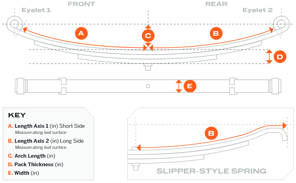 • Direct replacement - these leaf springs are designed to match the fit and function of the original leaf springs on specific vehicles or trailers
