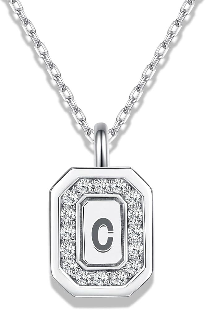 💎【تصميم رائع لقلادة الحرف C الأولية】تتميز قلادة شوجر تانغ الفضية على شكل حرف C بمزيج مذهل من الأناقة والحرفية. يعرض التصميم المعقد قلادة رائعة مربعة الشكل مرصعة، مما يضيف لمسة من الرقي إلى أي ملابس.