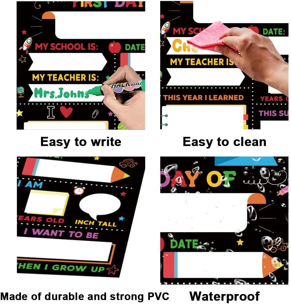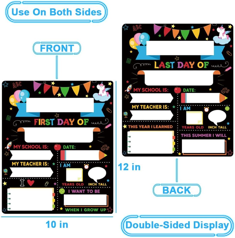 Two Side School Card: The double side board sign measures 12 x 10inch, The school board is printed with the words [first day of] and [last day of], which can help your child develop their interests, writing and learning skills.