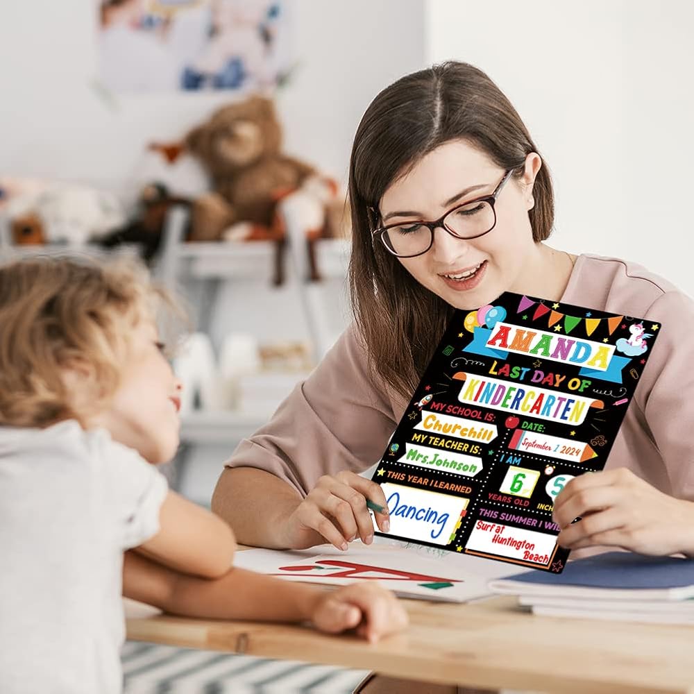 15 عبوة من لافتات اليوم الأول والأخير للمدرسة، لافتة سبورة العودة إلى المدرسة مقاس 30.48 سم × 25.4 سم لليوم الأول والأخير من المدرسة، لافتة دعائم للصور مزدوجة الجوانب لليوم الأول لرياض الأطفال/مرحلة ما قبل المدرسة/الأولاد/البنات