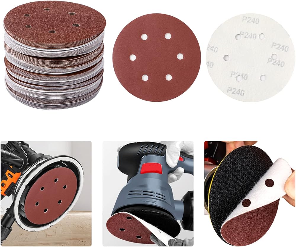• Effective Dust Management: Featuring a 6-hole design, these discs facilitate efficient dust extraction during sanding. The back design allows for quick grit replacement, extending the lifespan of the sanding discs.
