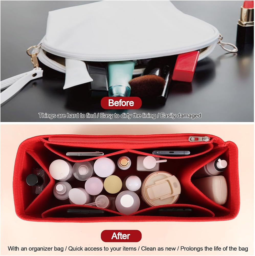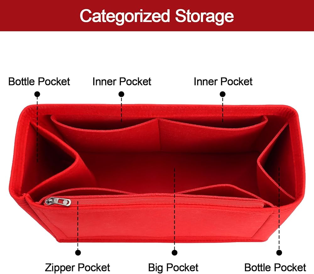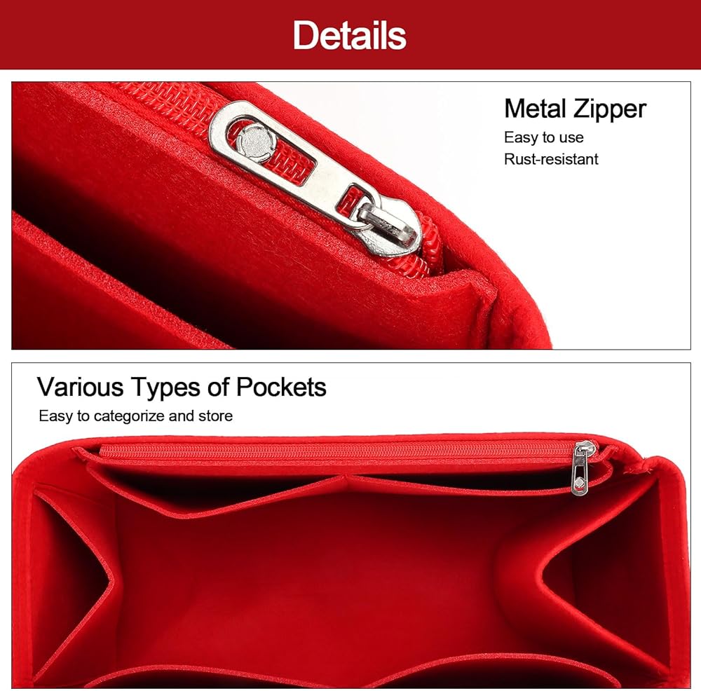 تنظيم محسّن: بفضل سحاب الإغلاق والجيوب المتعددة، يوفر منظم حقائب اليد الخاص بنا تنظيمًا مريحًا وفعالاً لممتلكاتك. قم بزيادة المساحة داخل حقيبة يدك واحتفظ بجميع أغراضك مرتبة بشكل أنيق. إنه يوفر مكانًا آمنًا لمقتنياتك الثمينة، حتى تتمكن بسهولة من العثور على هاتفك الخلوي والمفاتيح وغيرها من الضروريات.