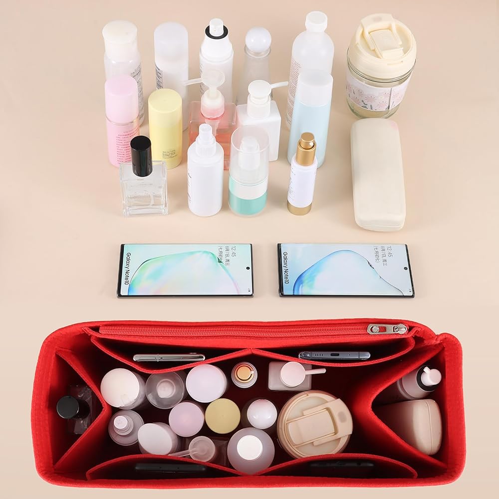خامة فائقة الجودة: مصنوع من لباد عالي الجودة، منظم حقيبة اليد هذا خفيف الوزن وناعم وقوي ومرن. فهو يحافظ على شكله ولن ينهار بسهولة عند وضعه في حقيبة يدك، مما يضمن متانة طويلة الأمد.