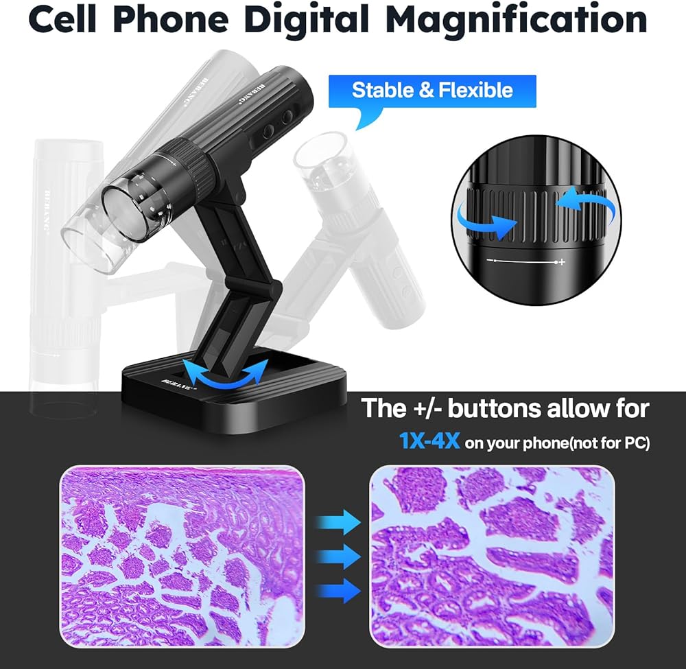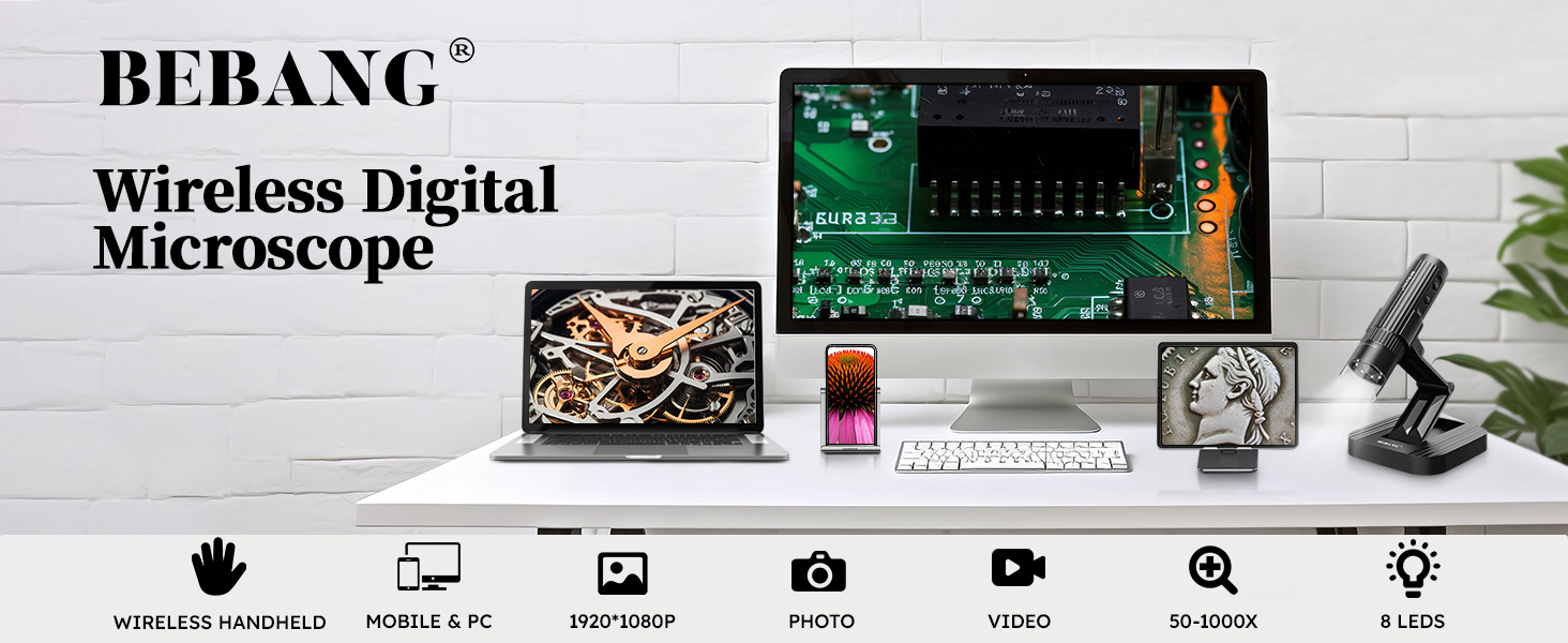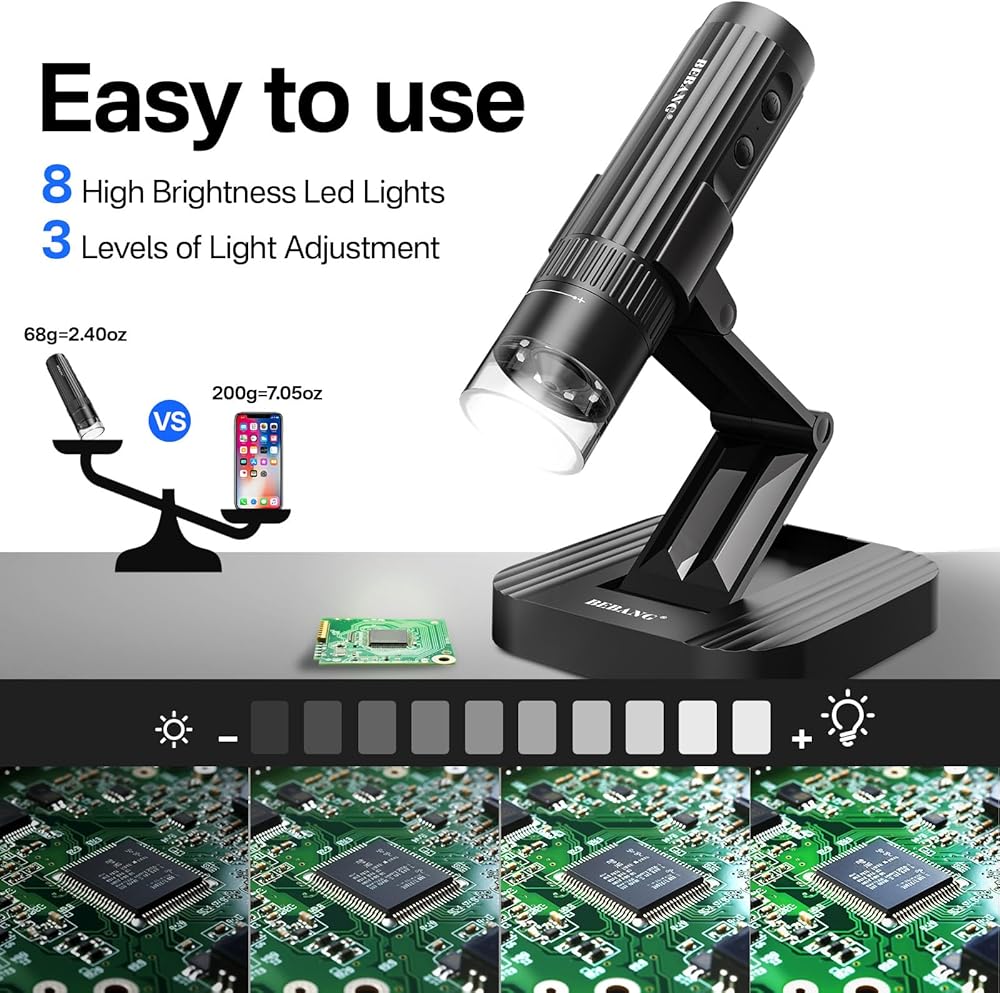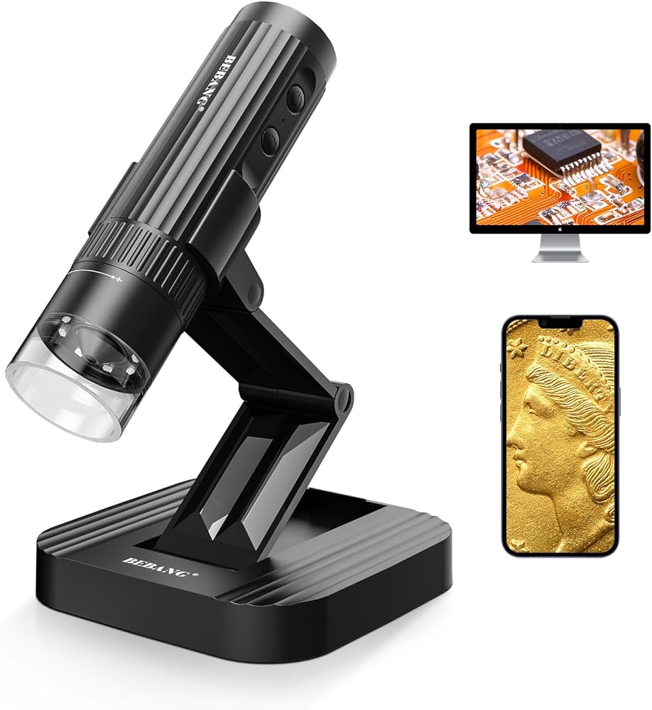 مجهر رقمي لاسلكي من BEBANG للبالغين، تكبير 50X-1000X عالي الدقة واي فاي مجهر محمول باليد مع حامل قابل للتعديل وكاميرا مجهر USB لأجهزة iPhone Android Windows Mac