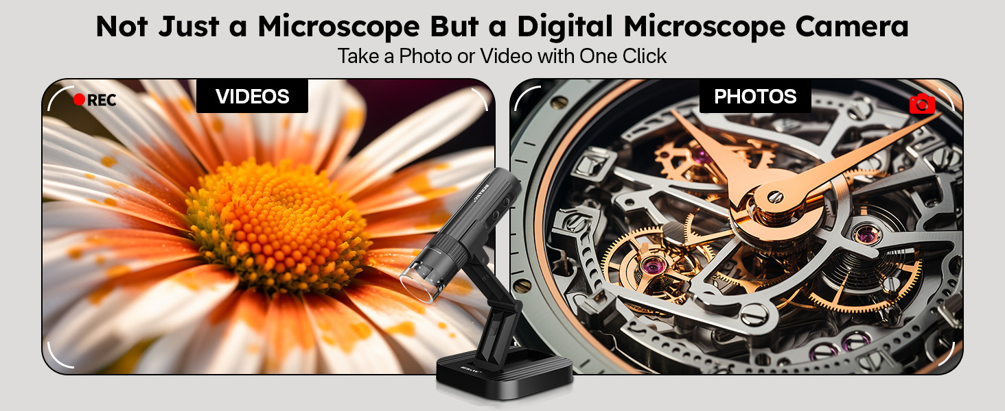 【ليس مجرد مجهر】أكثر من مجهر، إنها كاميرا مجهر رقمية USB واحدة. ما عليك سوى النقر على زر الصورة/الفيديو الموجود على الجهاز أو الضغط على مشغل التطبيق ذي الصلة لالتقاط صورة أو مقطع فيديو وحفظه على هاتفك. يمكنك أيضًا ضبط التكبير مباشرة من خلال التطبيق، وهو أمر مريح للغاية.