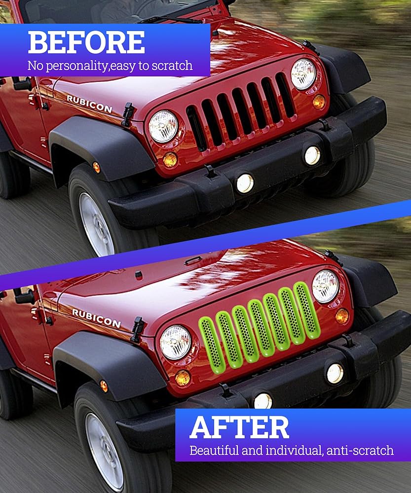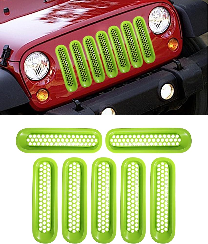 [Applicable] Insert the grille cover decoration for the 2007-2015 JK JKU. Note: Not suitable for the 75th anniversary and some other 2016/2017 models, which already have plugins in the front grille.