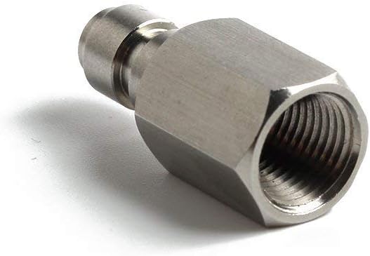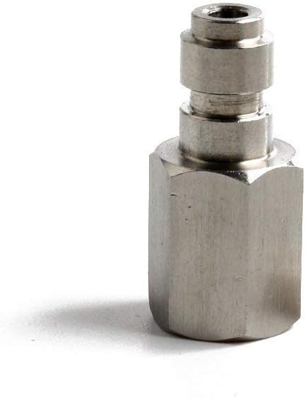 Material: Stainless steel, Size: 27.1mm / 1.06 inch Length, male quick disconnect plug, 1/8 inch BSPP inner female thread on the other end, Pressure Rated: 3000-5000 psi, Temperature Resistance: 1000 ℃.