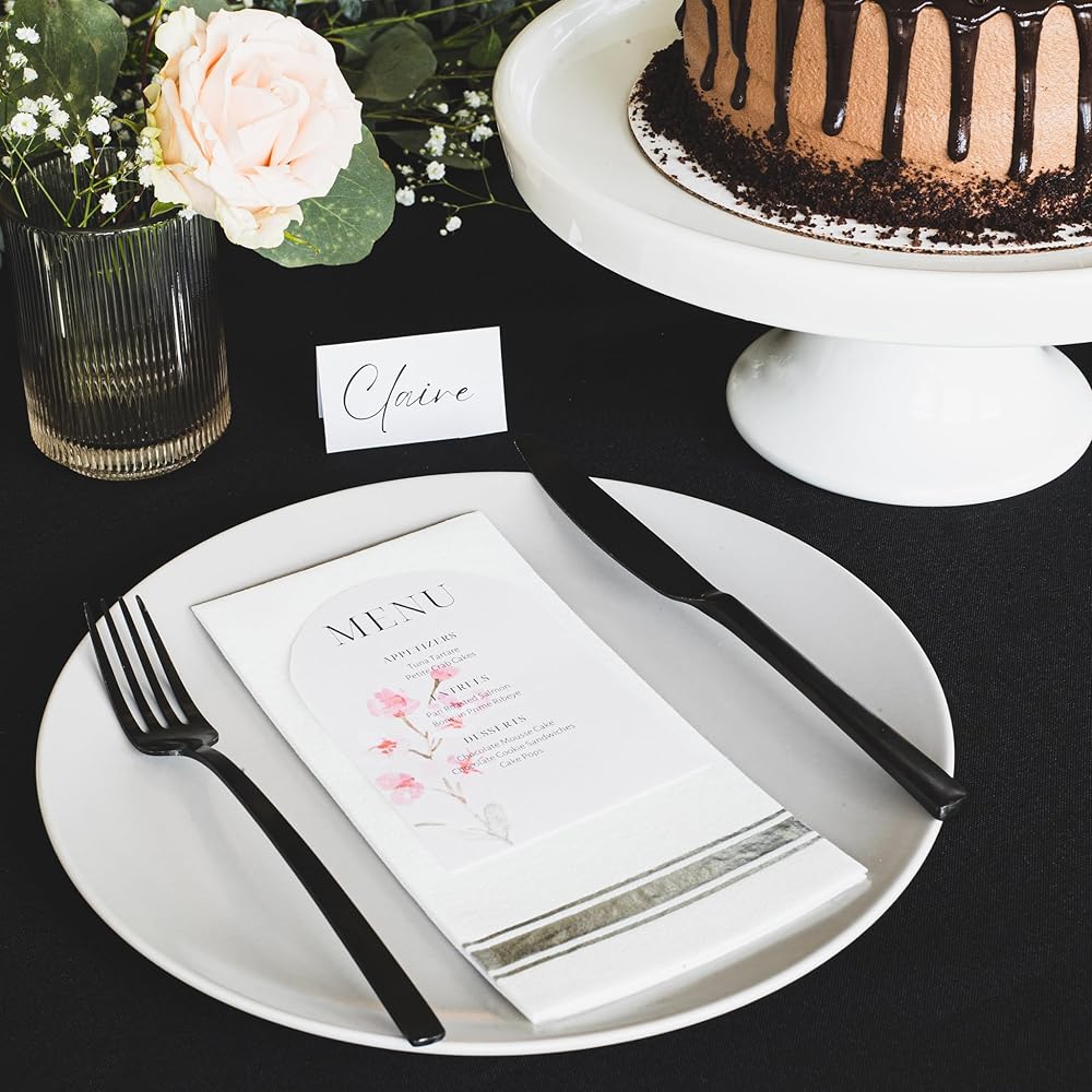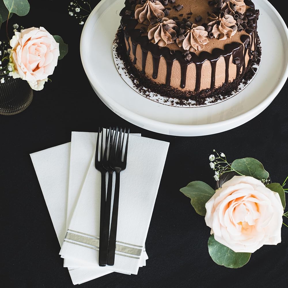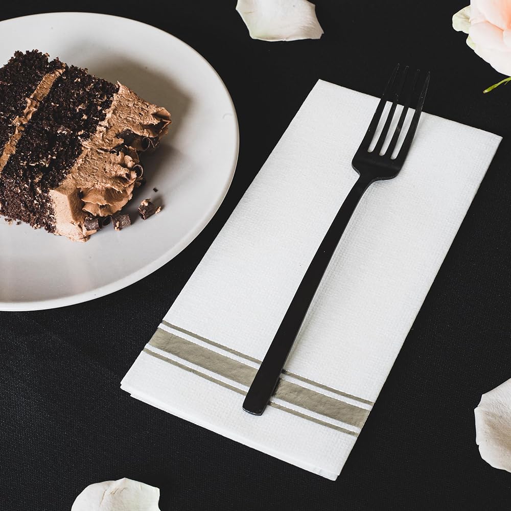 - ⭐ رقائق ذهبية معدنية على مناديل بيضاء بحجم العشاء (يمكن التخلص منها)