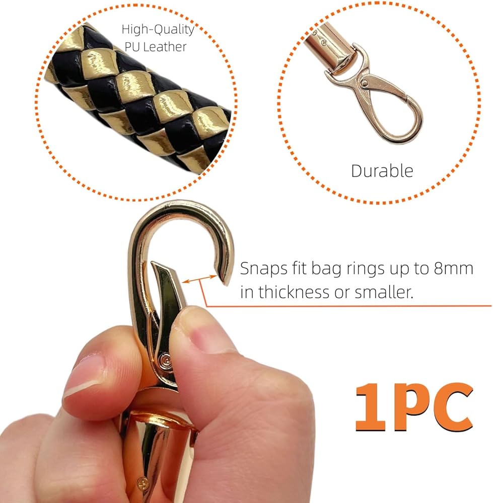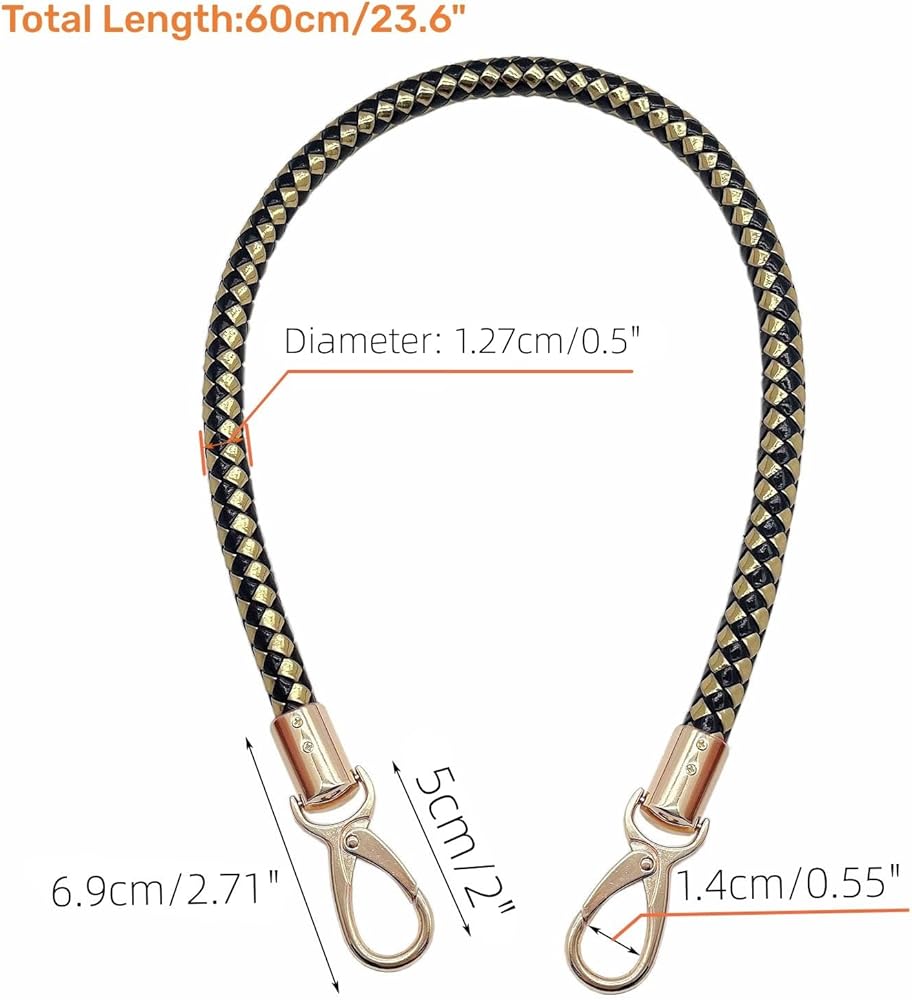 Size: Total Length:60cm/23.6inch; High quality metal buckles. Buckle length:5cm/2inch; Snaps fit bag rings up to 8mm in thickness or smaller.