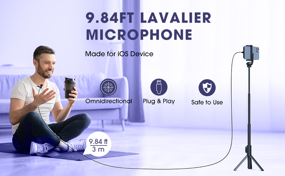 ميكروفون Lavalier لجهاز iOS. جودة صوت ممتازة ومشبك طية صدر السترة معدني قوي! ستعمل بشكل رائع مع مقاطع فيديو السيلفي بطول الذراعين. حصلت على هذا الميكروفون الصغير لأنه خفيف الوزن وقابل للحمل. صغير الحجم ولكنه يعمل بشكل جيد. يسمح طول الكابل الطويل بمجموعة متنوعة من الخيارات لوضعه.