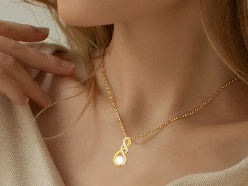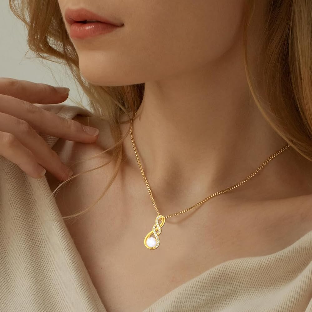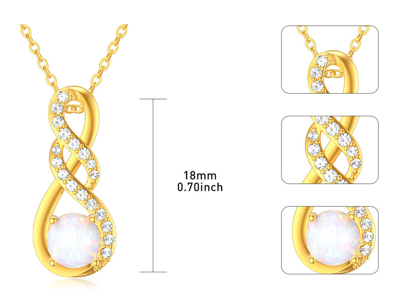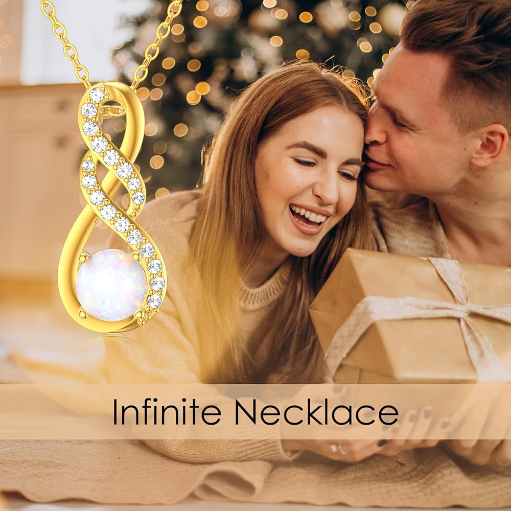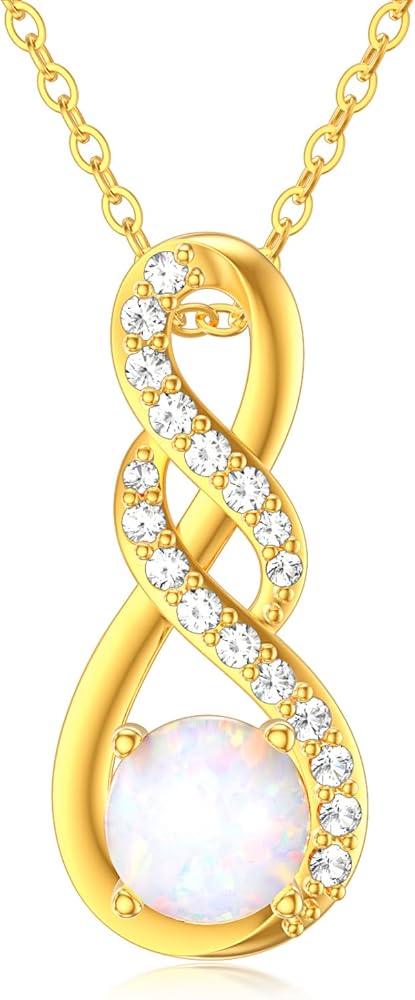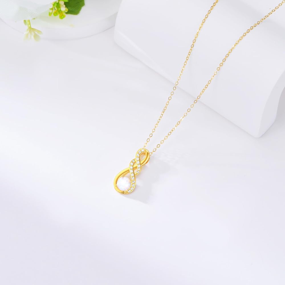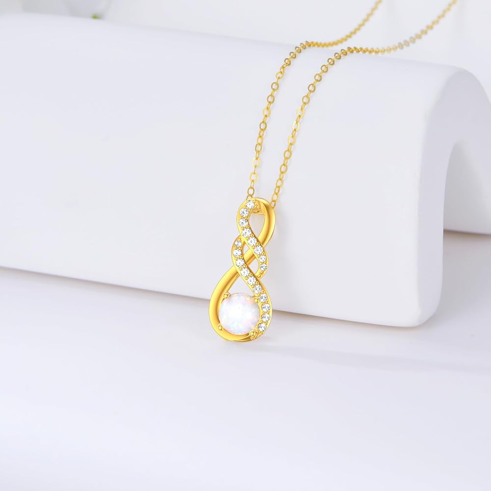 قلادات إنفينيتي من الذهب الخالص عيار 14 قيراط للنساء - قلادة أوبال إنفينيتي أنيقة من الذهب الأصفر بقلادة إنفينيتي