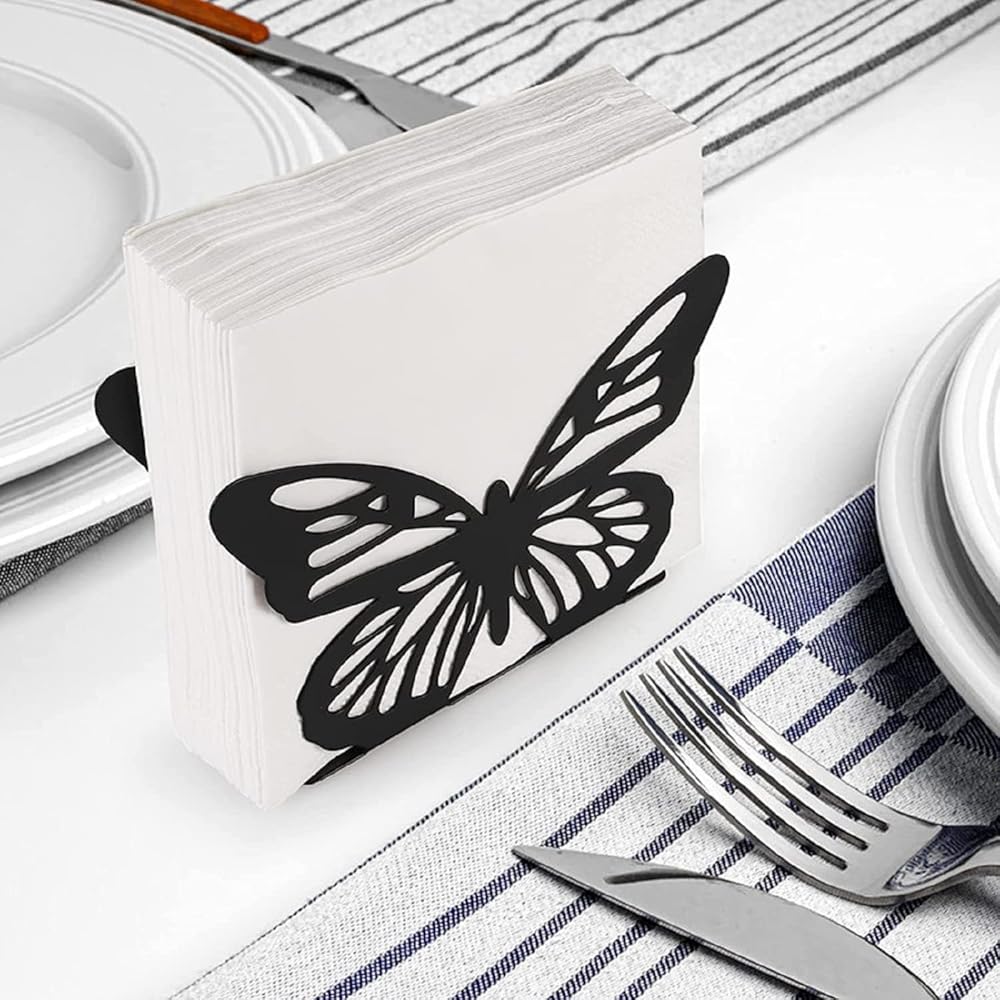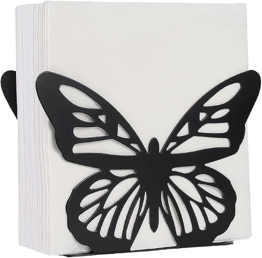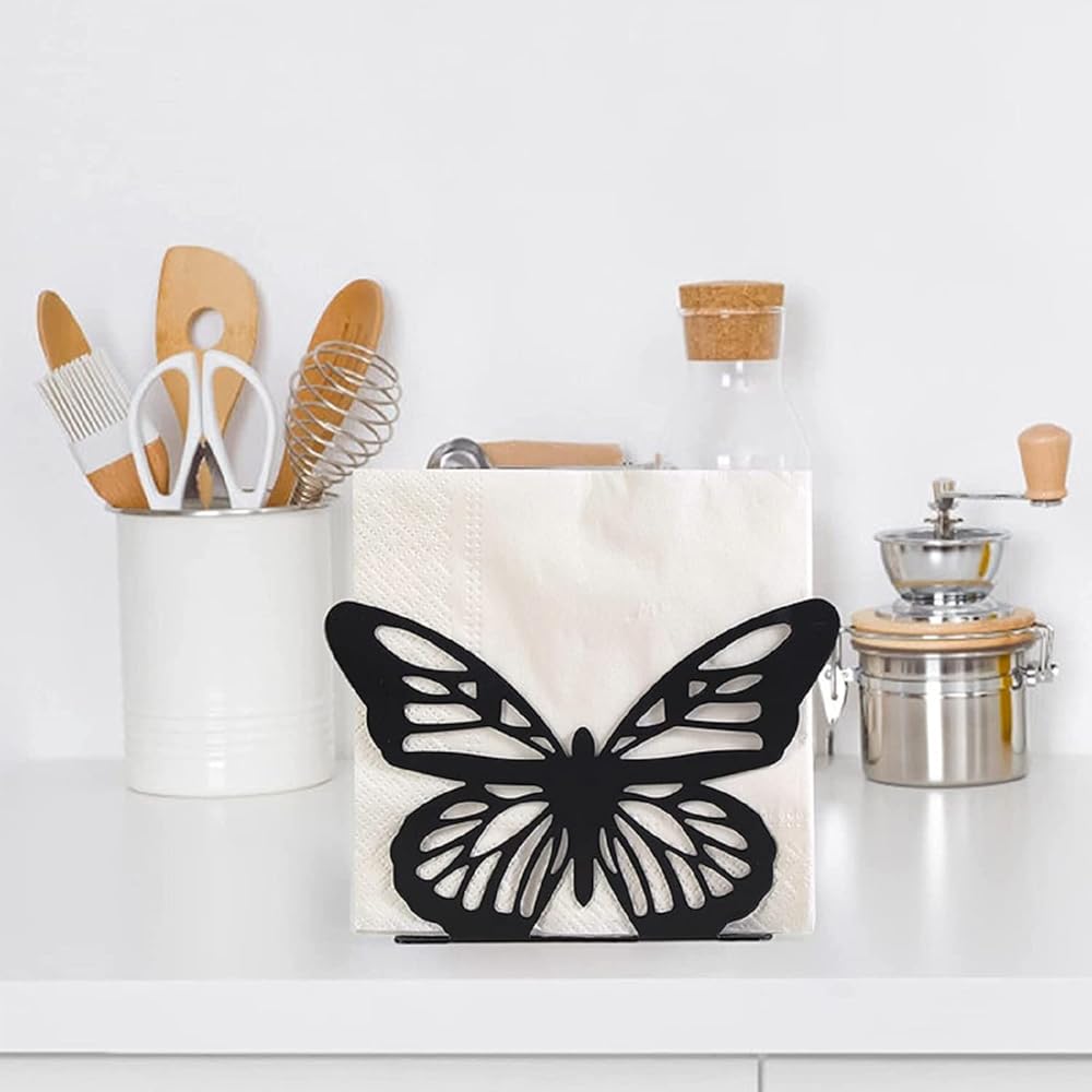 تصميم الفراشة: يستخدم حامل مناديل المطبخ هذا تصميم الفراشة لعمل زخرفة لافتة للنظر على الطاولة. يمكن ارتداء حامل المناديل هذا بأي نمط في منزلك. حاملات مناديل الفراشة تجعل طاولتك مفعمة بالحيوية والساحرة.