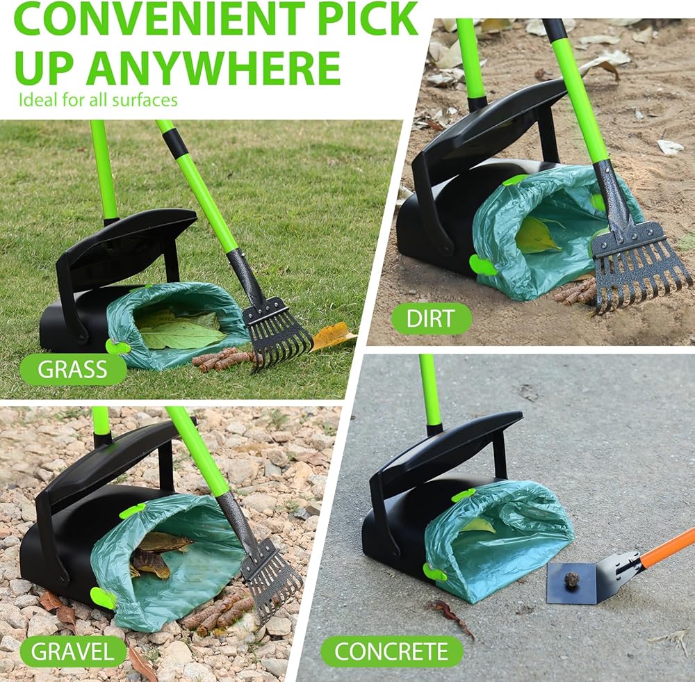 😉 𝗘𝗕𝗔𝗥 𝗦𝗣𝗔𝗗𝗘 - للأسطح المتعددة التي يمكن استخدامها على العشب والأرضيات الخرسانية والحصى والأوساخ، مثالية لالتقاط براز الحيوانات الأليفة وأوراق الشجر وحطام الحديقة. من الممتع أن تأخذها معك أثناء المشي أو الرحلات إلى الحديقة أو أي مغامرة خارجية مع رفيقك المكسو بالفراء.