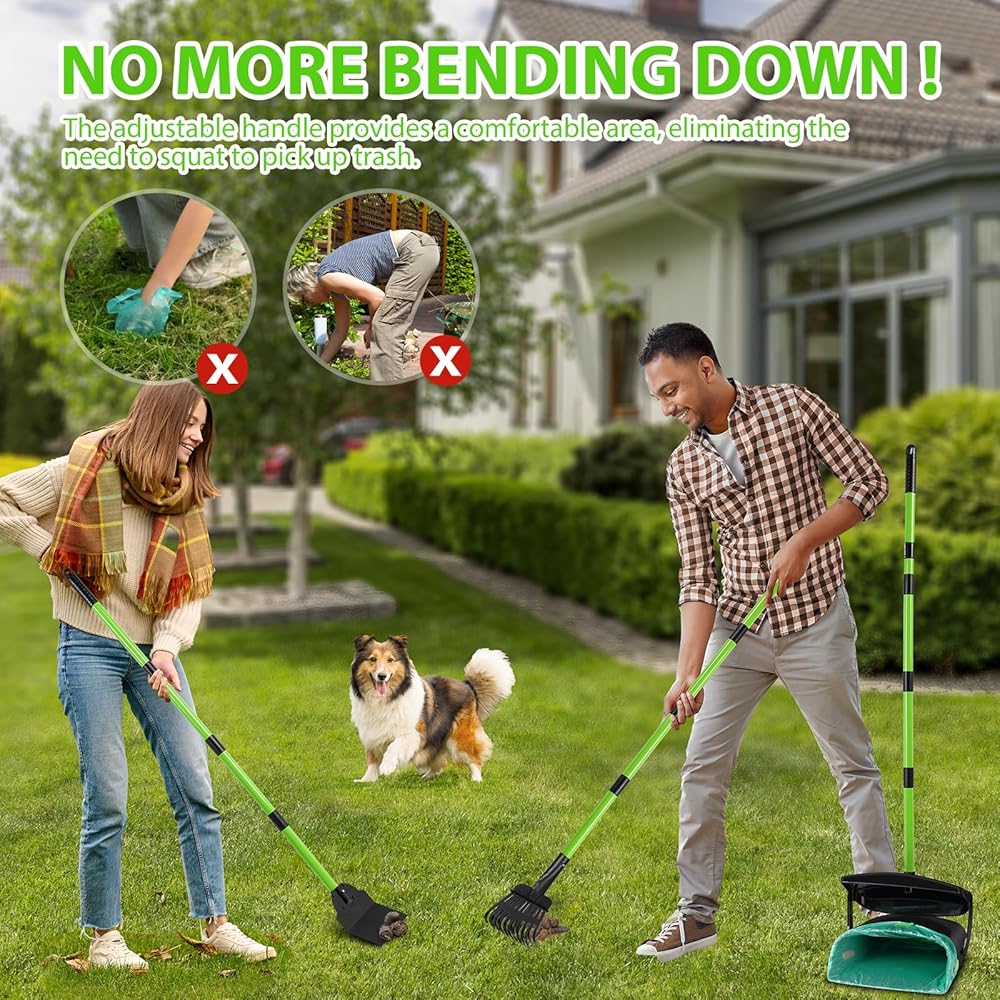 🐶𝗡𝗢 𝗠𝗢𝗥𝗘 𝗕𝗘𝗡𝗗𝗜𝗡𝗚 & 𝗞𝗡𝗘𝗘𝗟𝗜𝗡𝗚 - تسمح لك المقابض المقسمة بتعديل طول المقبض بحرية وفقًا لاحتياجاتك. سواء كنت كبيرًا في السن أو حاملًا، فإن مغرفة براز الحيوانات الأليفة الطويلة للغاية القابلة للتعديل تسمح لك بالالتقاط من وضع مريح. لذا فإن ملاحقة صديقك ذو الفراء لم يعد عملاً روتينيًا مرهقًا.