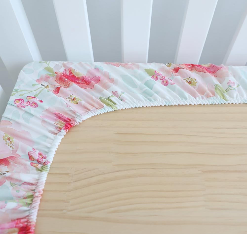 غطاء وسادة تغيير سرير الأطفال البنات (زهري النعناع الوردي)