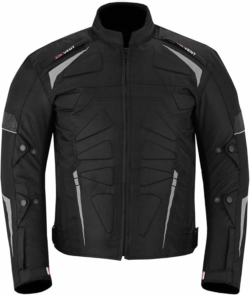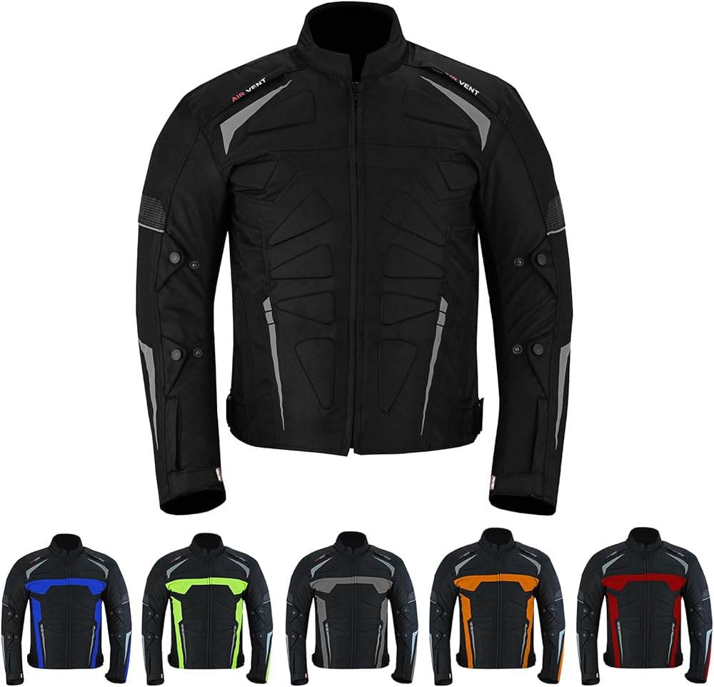 Men's Motorbike Waterproof Jacket in 600d Cordura Fabric Material CE Approved Removeable Shoulder and Elbow Armour Thick foam padding Protection at back Cuff and waist adjustments with Fastener strap Fastening: Zip Air Vent Zips at Front and Back Lining - Removable and washable. For all weather YKK Full Zip Mobile Pocket inside Extra Foam Padding at front and Back to provide maximum protection