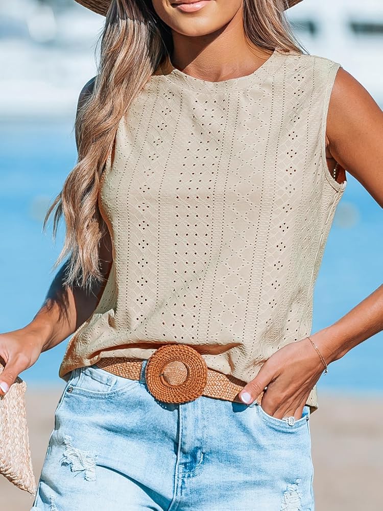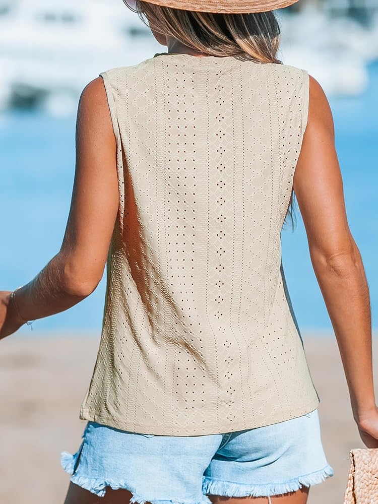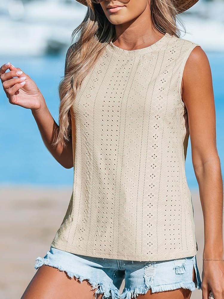 [تصميم فريد]: قم بترقية خزانة ملابسك الصيفية مع القميص ذو الرقبة العالية بدون أكمام. تفاصيل العيينة والتصميم ذو الرقبة العالية يضفي مظهرًا راقيًا ومرحًا، مثالي لإضافة لمسة من السحر إلى أطقم الصيف الخاصة بك.