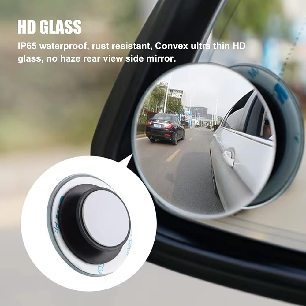 This blind spot mirror is made of HD curved glass with a diameter of 1.96 inches. It adopts a borderless ultra-thin design, which is more fashionable. The waterproof blind spot mirror can maintain clarity on rainy days.