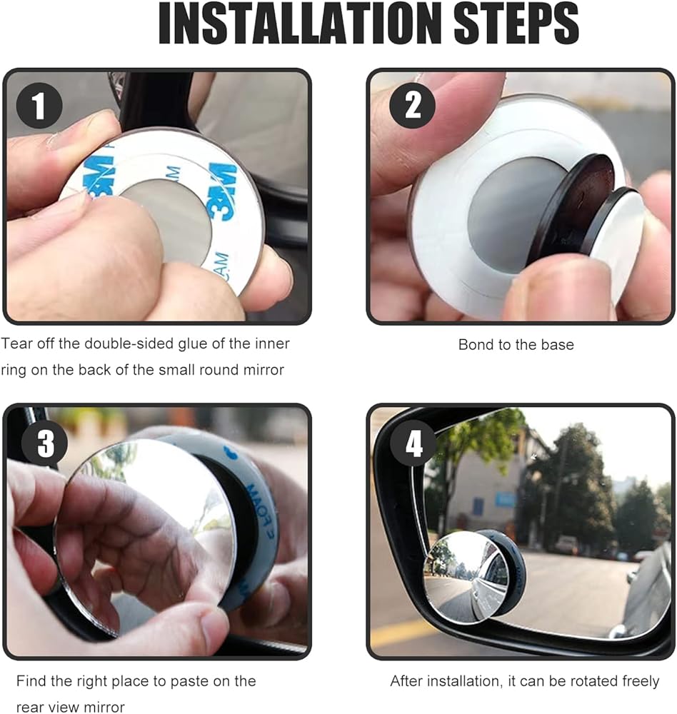 This round convex mirror blind spot adopts superior waterproof and high-temperature resistant automotive adhesive, which can be quickly and firmly adhered to the rearview mirror without damaging the mirror surface when removed.