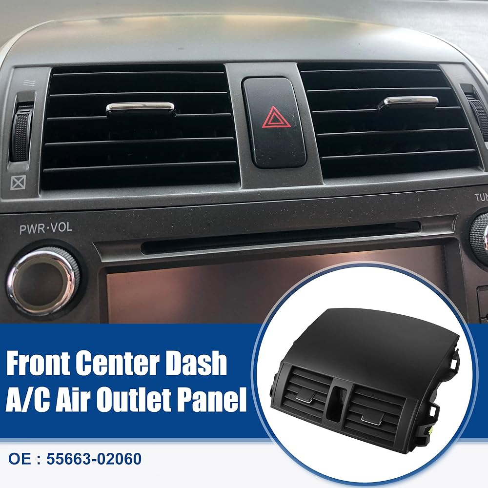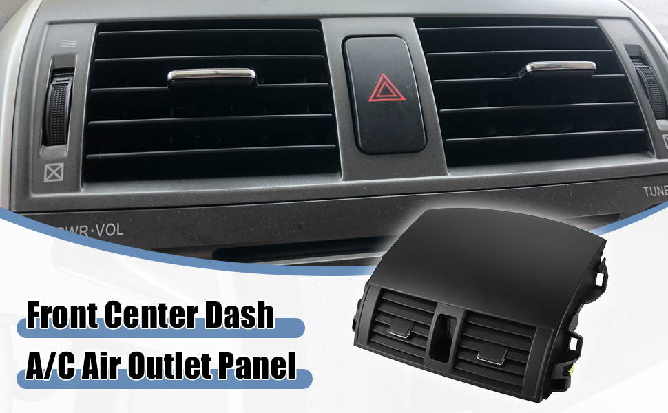 ACROPIX لوحة تنفيس هواء السيارة، لوحة القيادة الأمامية المركزية لمنفذ مكيف الهواء، لوحة تهوية مناسبة لسيارة Toyota Corolla - عبوة من قطعة واحدة باللون الأسود