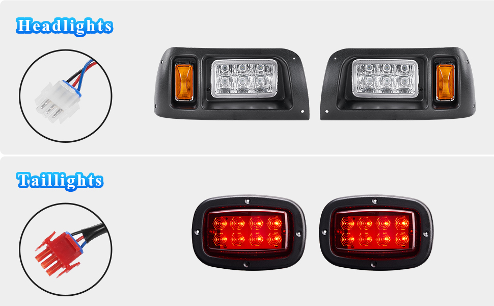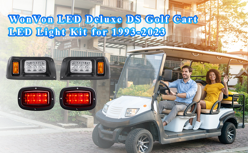 【متوافقة مع】WonVon مجموعة مصابيح عربة الجولف الفاخرة هذه المتوافقة مع عربات الجولف موديل DS 1993 التي تعمل بالبنزين والكهرباء، إنها الإضافة المثالية لسيارة Club Car DS 1993-Up.