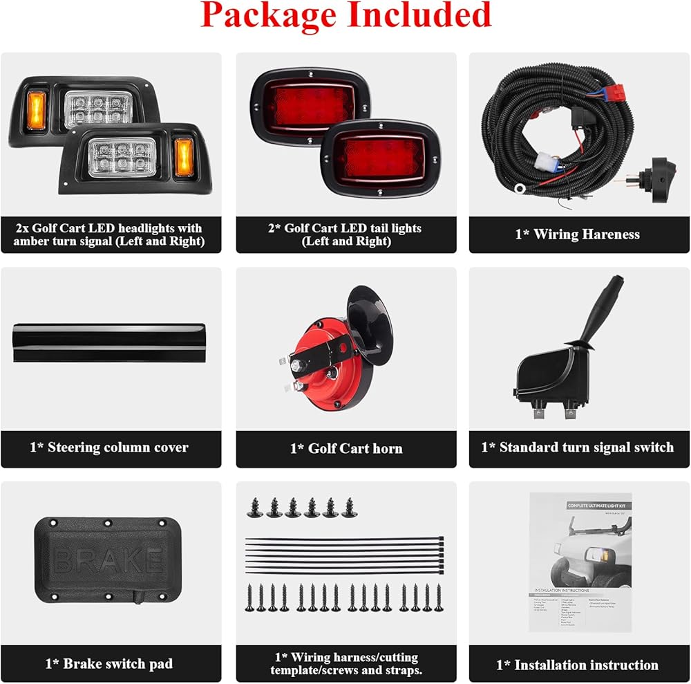 【سهلة التركيب】تتضمن مصابيح عربة الجولف LED الفاخرة الخاصة بنا أدوات مثل سرج الأسلاك والمسامير، والتوصيل والتشغيل. يتم أيضًا تضمين تعليمات المنتج التفصيلية في العبوة، والخطوات سهلة الفهم، ستحتاج فقط إلى قضاء ساعتين لإكمال التثبيت.