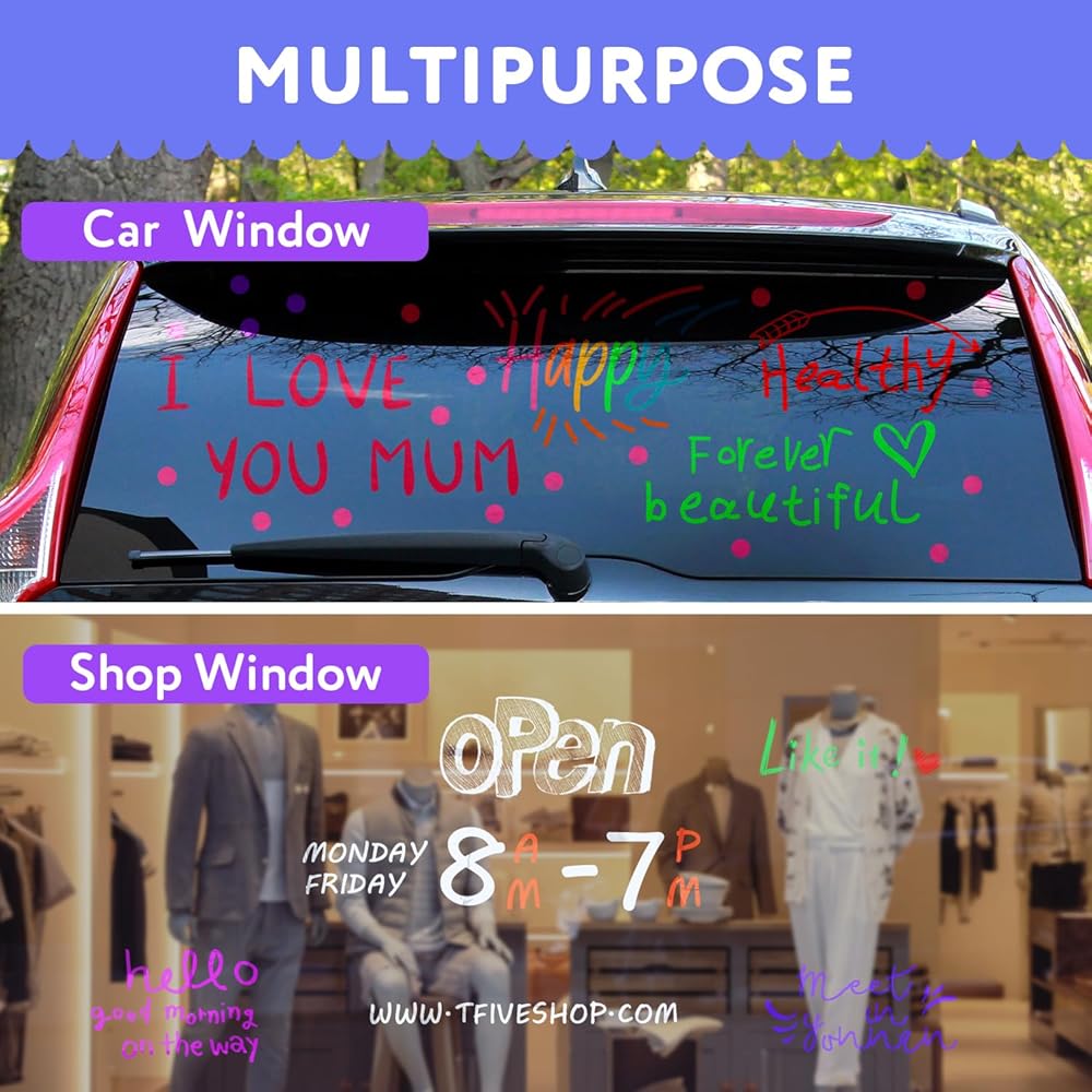 【سهلة التنظيف】 عندما تكون جاهزًا للكتابة والبدء من جديد، فإن مجرد مسح منشفة ورقية مبللة سيزيل أقلام الطباشير القابلة للمسح بالكامل وسهولة من أي سطح غير مسامي تقريبًا.