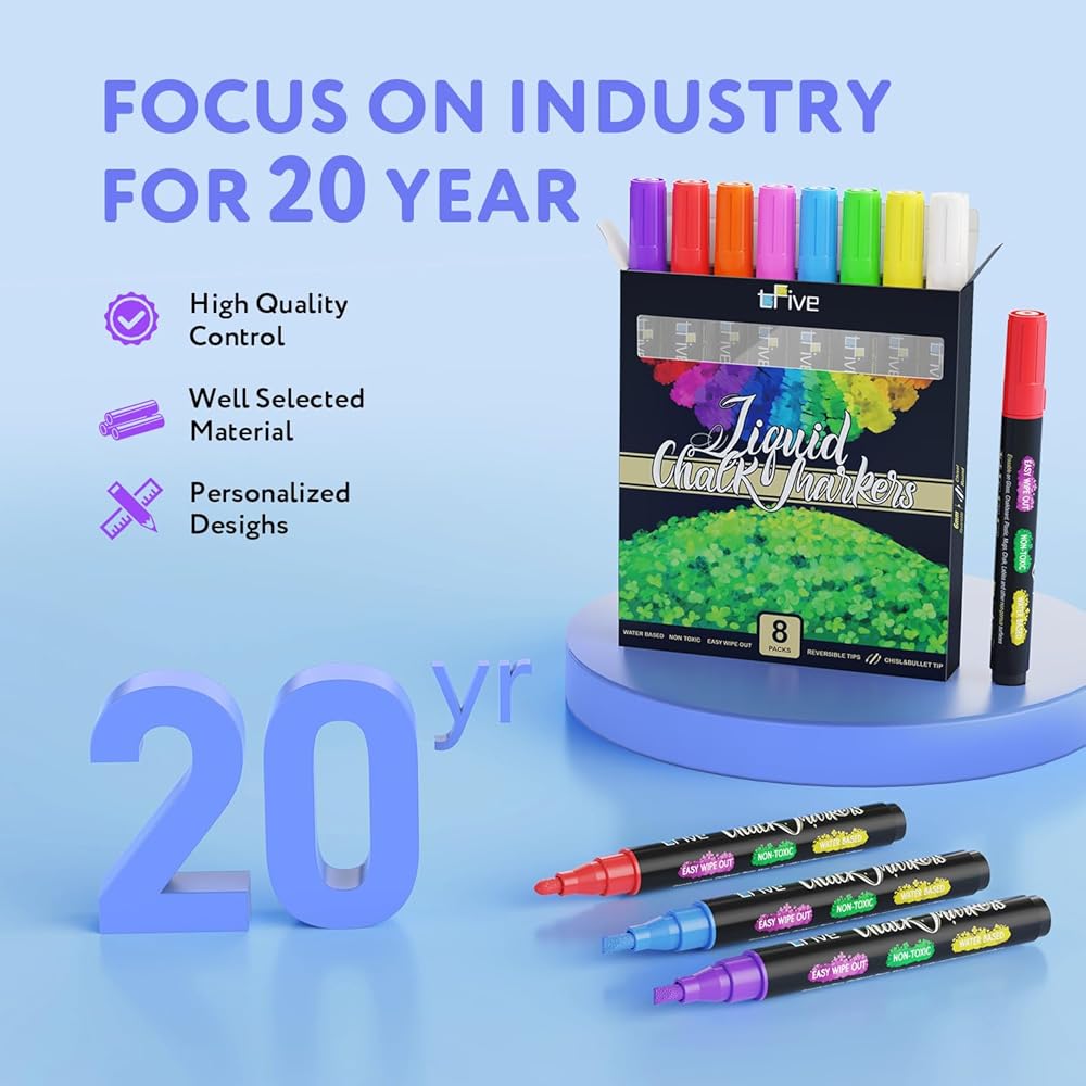【علامة طباشير جريئة】مع ألوان نابضة بالحياة ومشرقة، من المؤكد أن أقلام الطباشير TFIVE ستجعل إبداعاتك مميزة. أضف لمسة من الألوان إلى لافتاتك أو أعمالك الفنية أو مواد الفصل الدراسي بسهولة.
