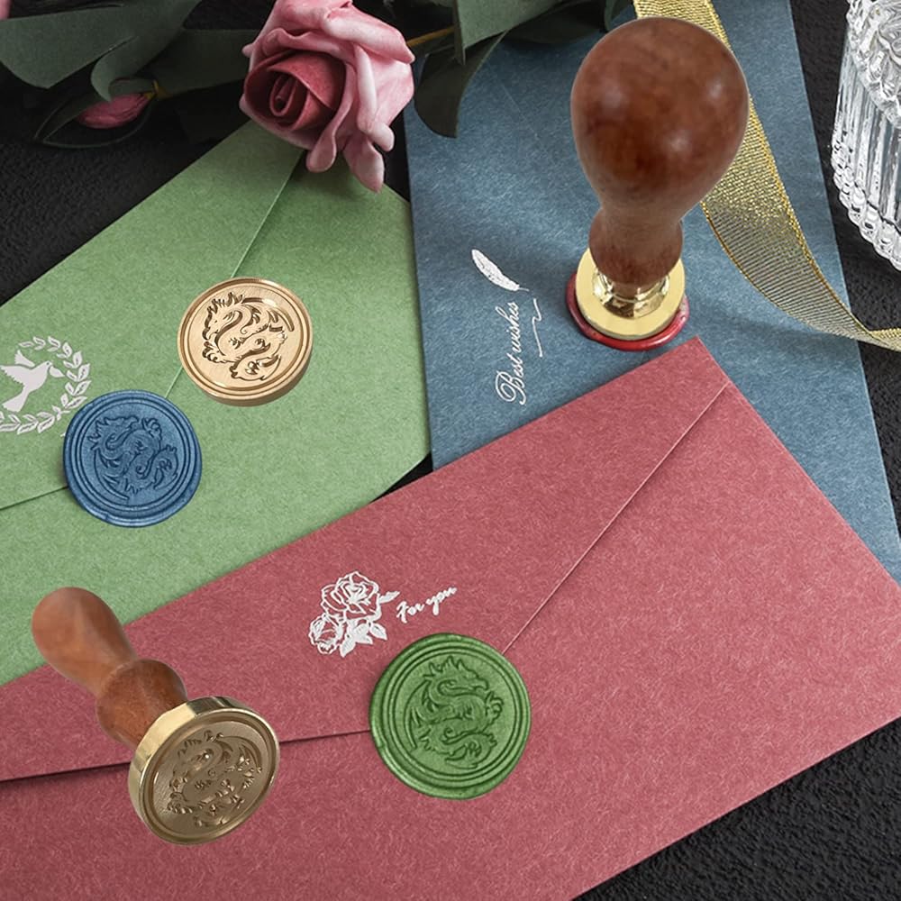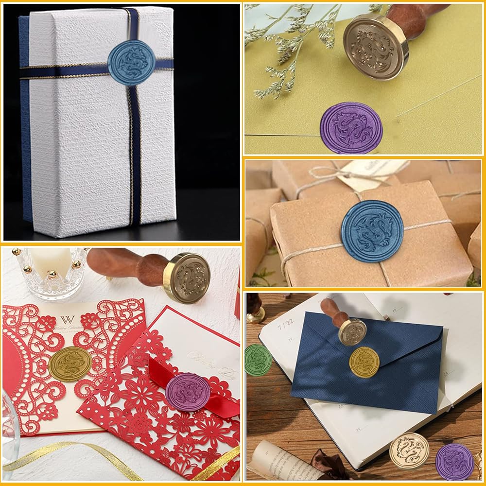 ختم التنين الطائر لإضافة عنصر فريد إلى الأظرف أو البطاقات. إنها فكرة رائعة أن تفاجئ مستلميك! قم بختم نمط ختم الشمع المفضل لديك لتعزيز الشعور بالاحتفال.