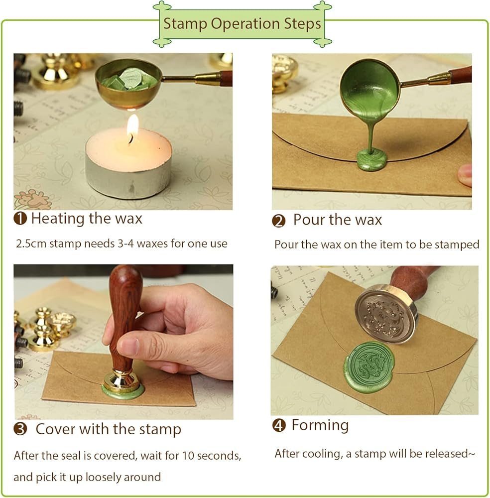 تشمل العبوة: 1 رأس نحاسي دائري منحوت بدقة، 1 مقبض من خشب الورد، ورق تحرير غير لاصق من جانب واحد، ملصقات ذاتية اللصق على الوجهين. يبلغ قطر الختم 0.98 بوصة (25 ملم) ويبلغ طوله الإجمالي 3.42 بوصة (87 ملم). لا يشتمل هذا المنتج على ملاعق ذوبان أو شمع.